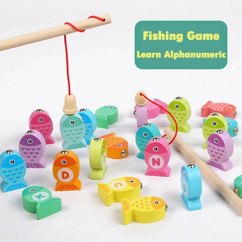 Деревянная Магнитная игра Fshing, мультяшная Морская жизнь, познание, рыба, удочка, игрушки для детей, раннее развивающее интерактивное устройство для родителей и детей