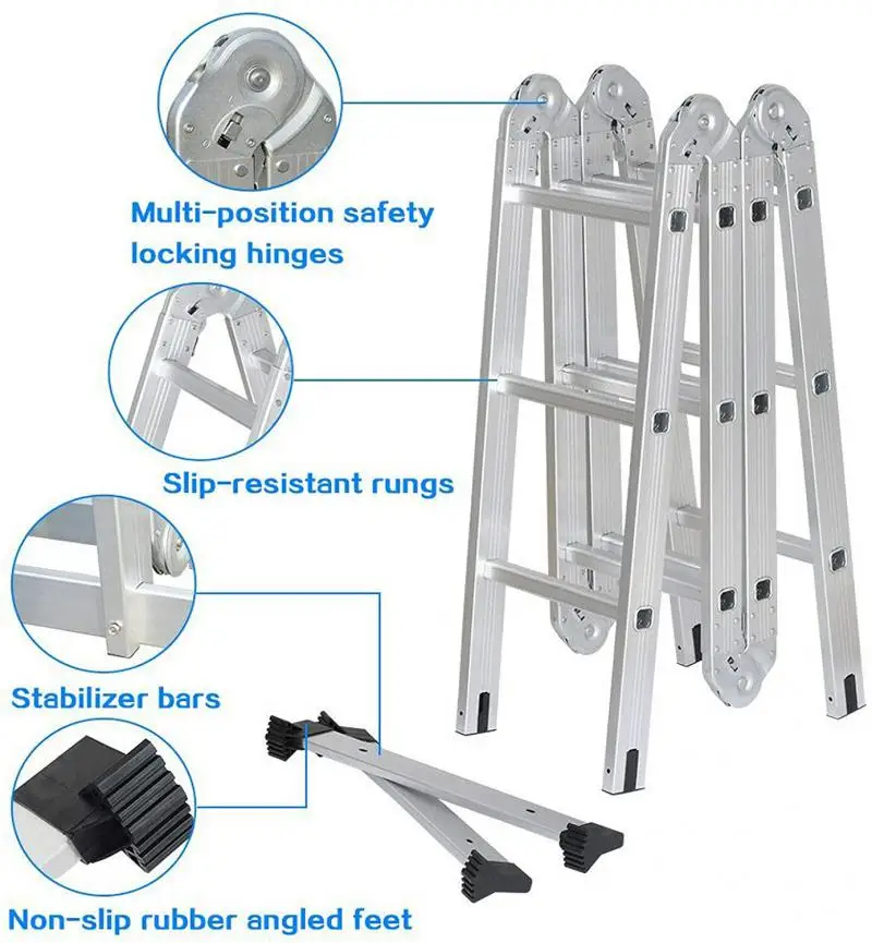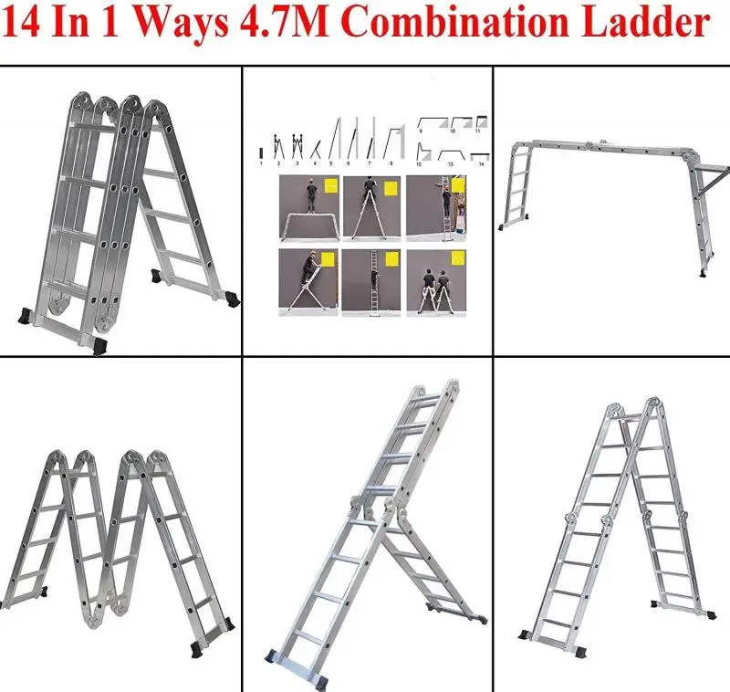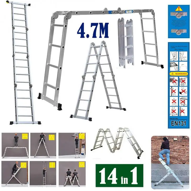 Содержит: 4,7 M серебристо-белый складной 16-приставная алюминиевая лестница (4X4) ручная работа
