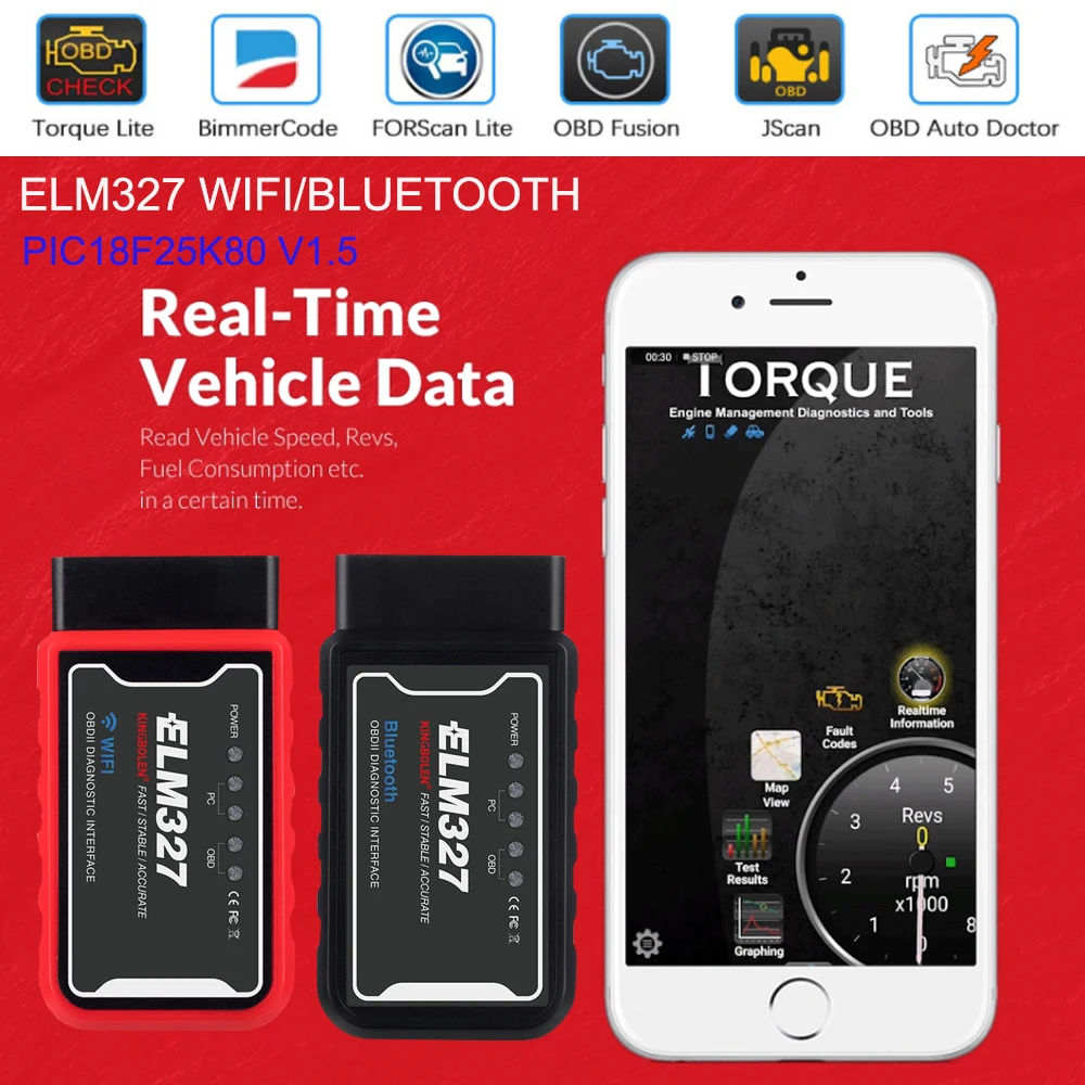 Bluetooth WIFI V1.5 ELM327 OBD2 сканер PIC18F25K80 iphone Android а...