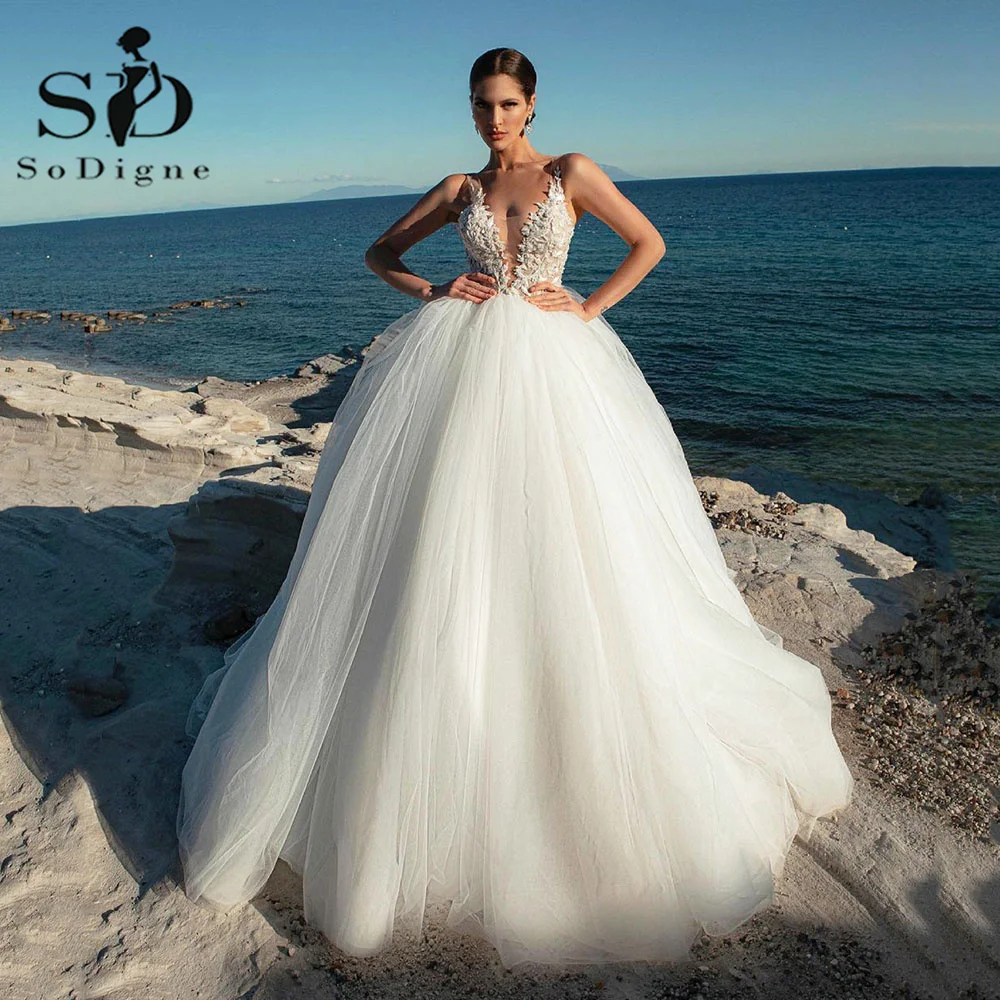 Женское свадебное платье со съемным шлейфом SoDigne, длинное кружев...