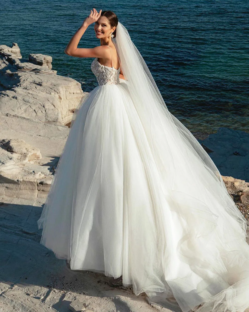 Платье LORIE свадебное с V-образным вырезом, Пляжное фатиновое с от...