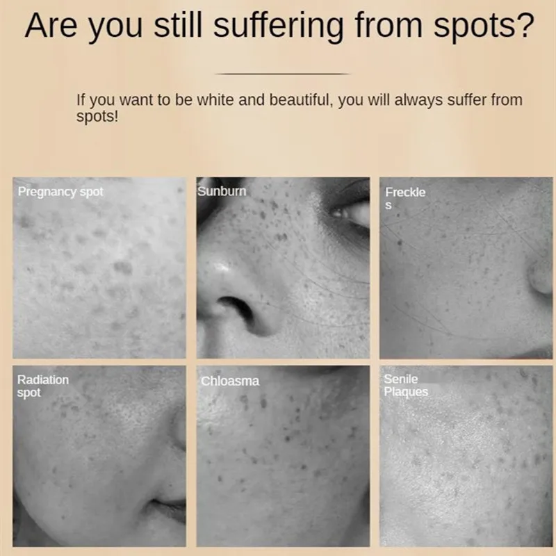 Удаление меланина, питательное и Отбеливающее ★Выцветание пятна ★Осветление и удаление тусклой кожи ★Удалите пятна слоем за слоем ★Для удаления меланина из источника √ 1. Бисаболол: успокаивает хрупкую кожу √ 2. Арбутин: подавляет тусклый фактор √ 3. Nicotinamide: тусклая кожа