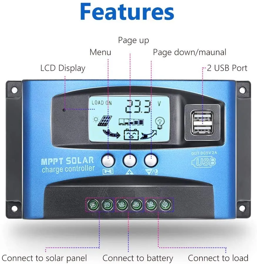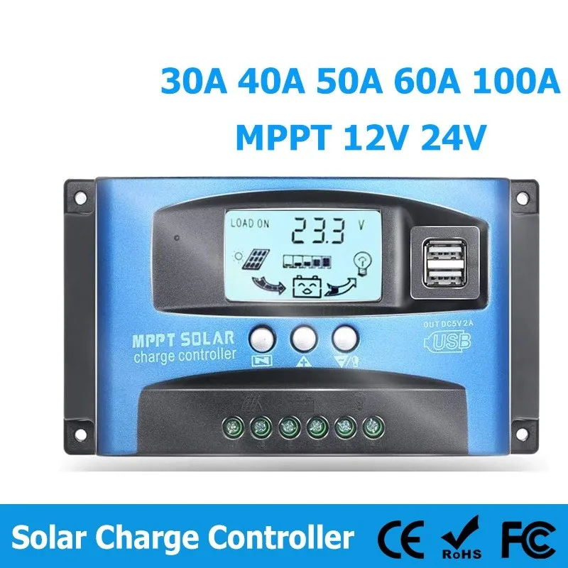 Контроллер солнечной панели MPPT, 1 шт., регулятор заряда 12 В24 В, автоматическое отслеживание фокуса, зарядное устройство 30 А-100 А, ЖК-дисплей