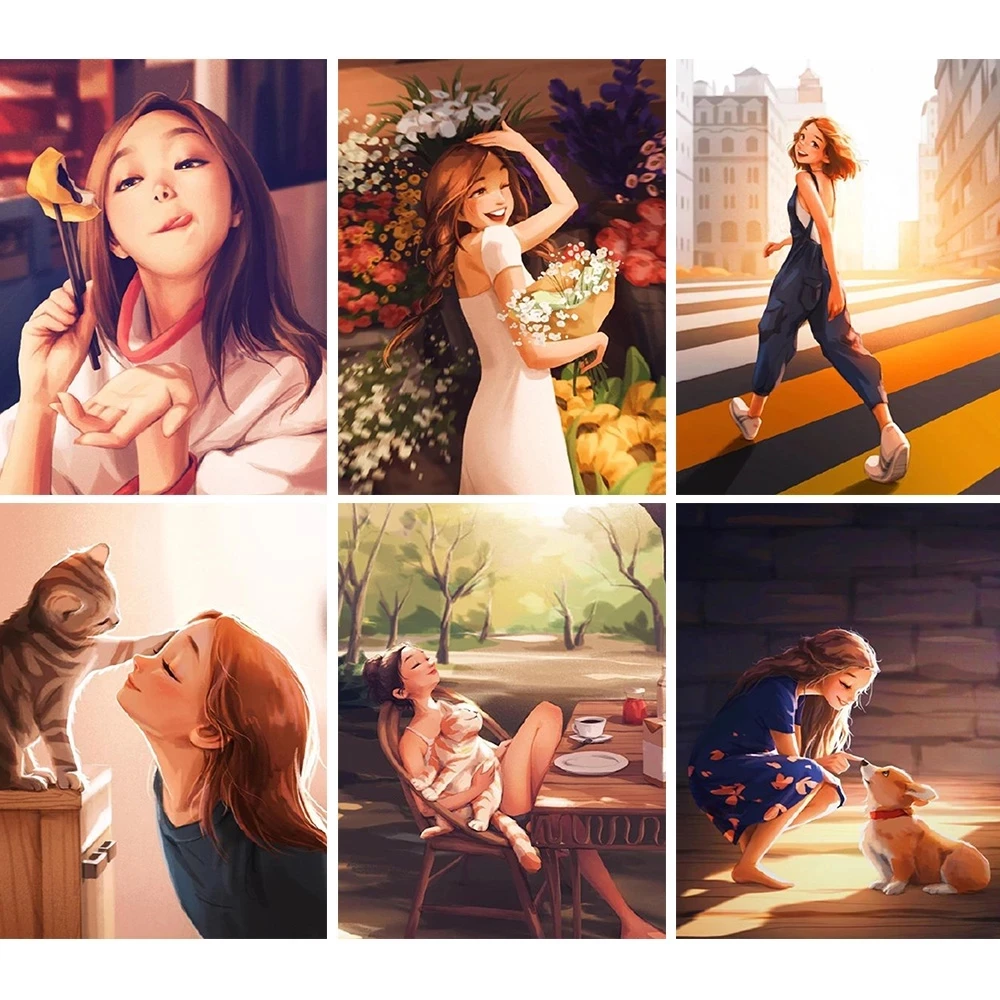 5D мультфильм сделай сам алмазная живопись девушка и Кот и собака ежедневная полная круглая квадратная Стразы Вышивка крестиком Мозаика украшение для дома