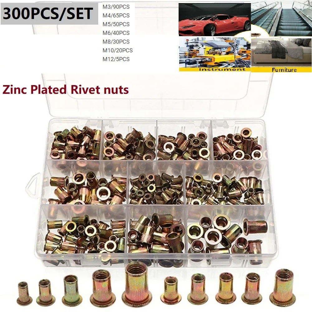 300 шт. заклепочная гайка, гайка, цинковая, углеродистая сталь, рифленые гайки, гайка, гайка, головка, Резьбовая стандартная