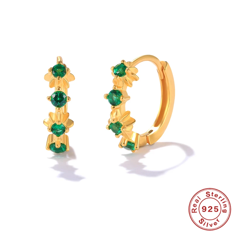 Женские серьги-кольца ROXI, с геометрическим циферблатом, с замком от солнца, 925 пробы, серебристые, зеленые, циркониевые серьги, ювелирные изделия