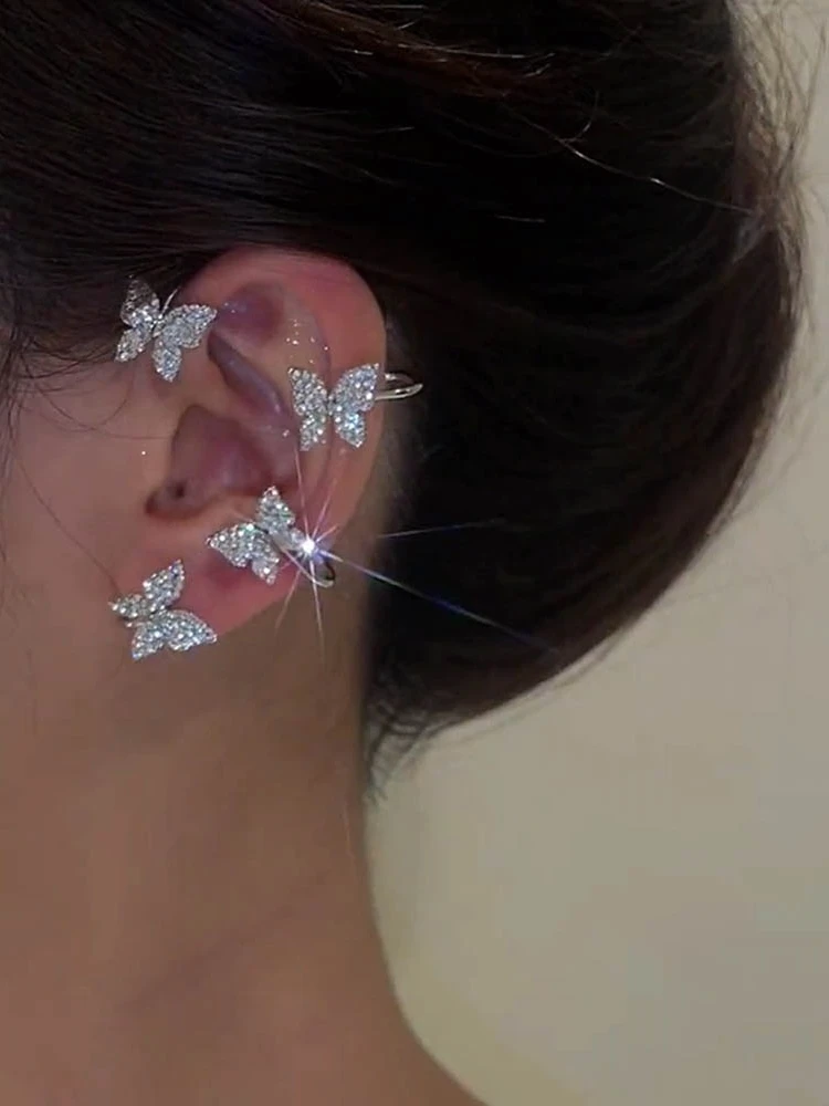 Серебряные металлические клипсы-бабочки для ушей без пирсинга для женщин, сверкающие циркониевые клипсы для ушей, серьги-каффы, свадебные украшения