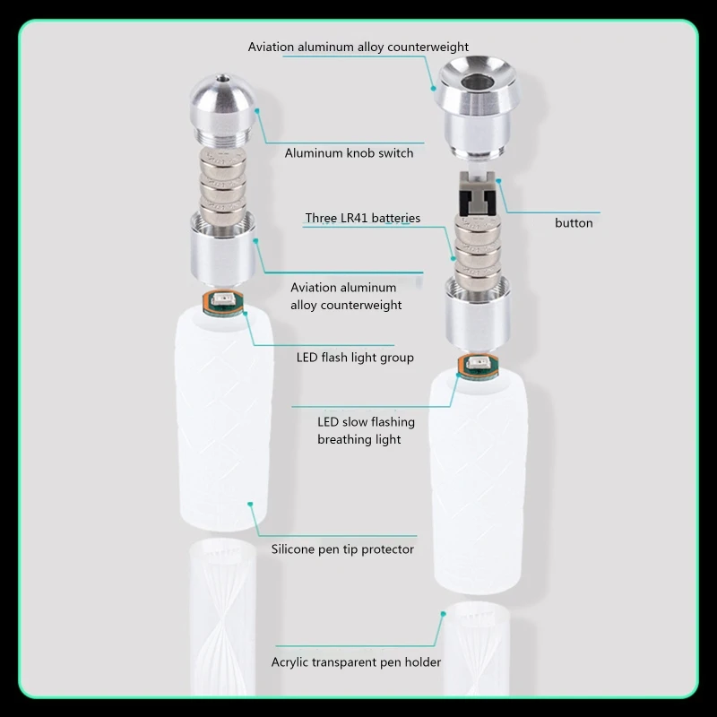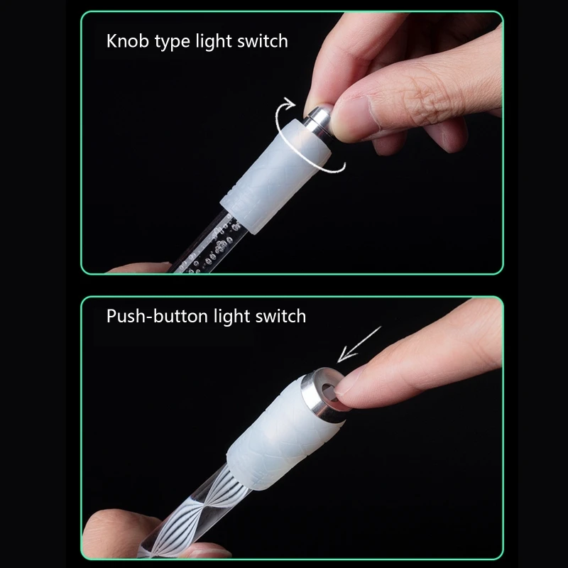 Оригинальный дизайн, прост в использовании. Кнопочный переключатель и поворотный переключатель. Модернизированный дизайн axisymmetric, 2 конца вращающейся ручки взвешиваются для достижения золотой точки баланса, чтобы улучшить гибкость использования. С защитой от падения силиконовых колпачков для увеличения долговечности. Классический светодиодный яркий свет очень ослепительный и очаровательный.