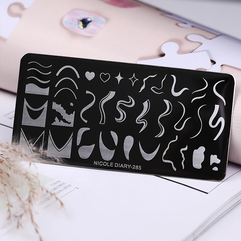 Трафареты NICOLE DIARY для маникюра, штамп с французскими линиями, цветочный лист, скошенная полоска