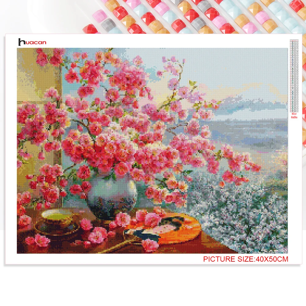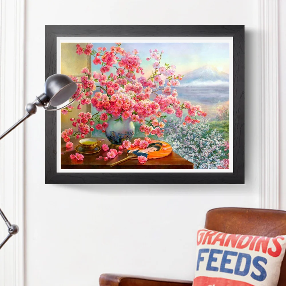 Huacan Алмазная мозаика Сакура ваза 5D алмазная живопись пейзаж окно вышивка ручная работа украшение для дома