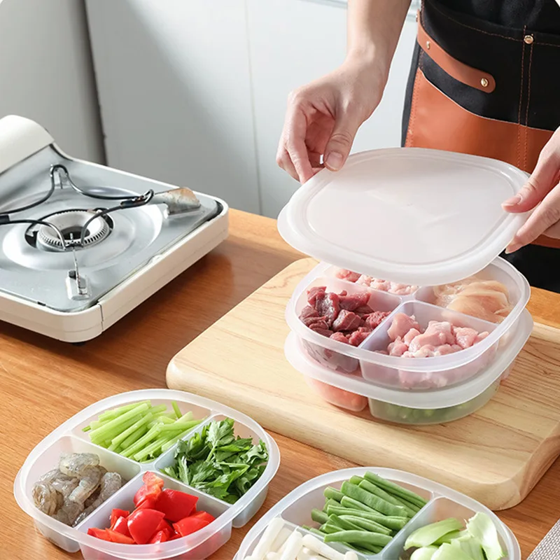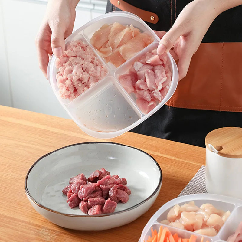 Контейнер для хранения еды с 4 отделениями, контейнер-дозатор для овощей и мяса, герметичные органайзеры, кухонные инструменты