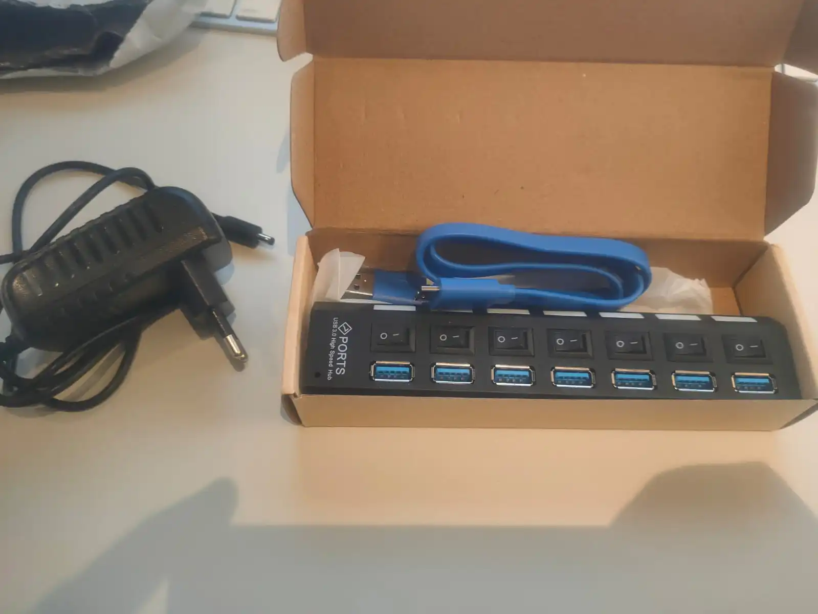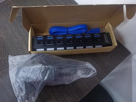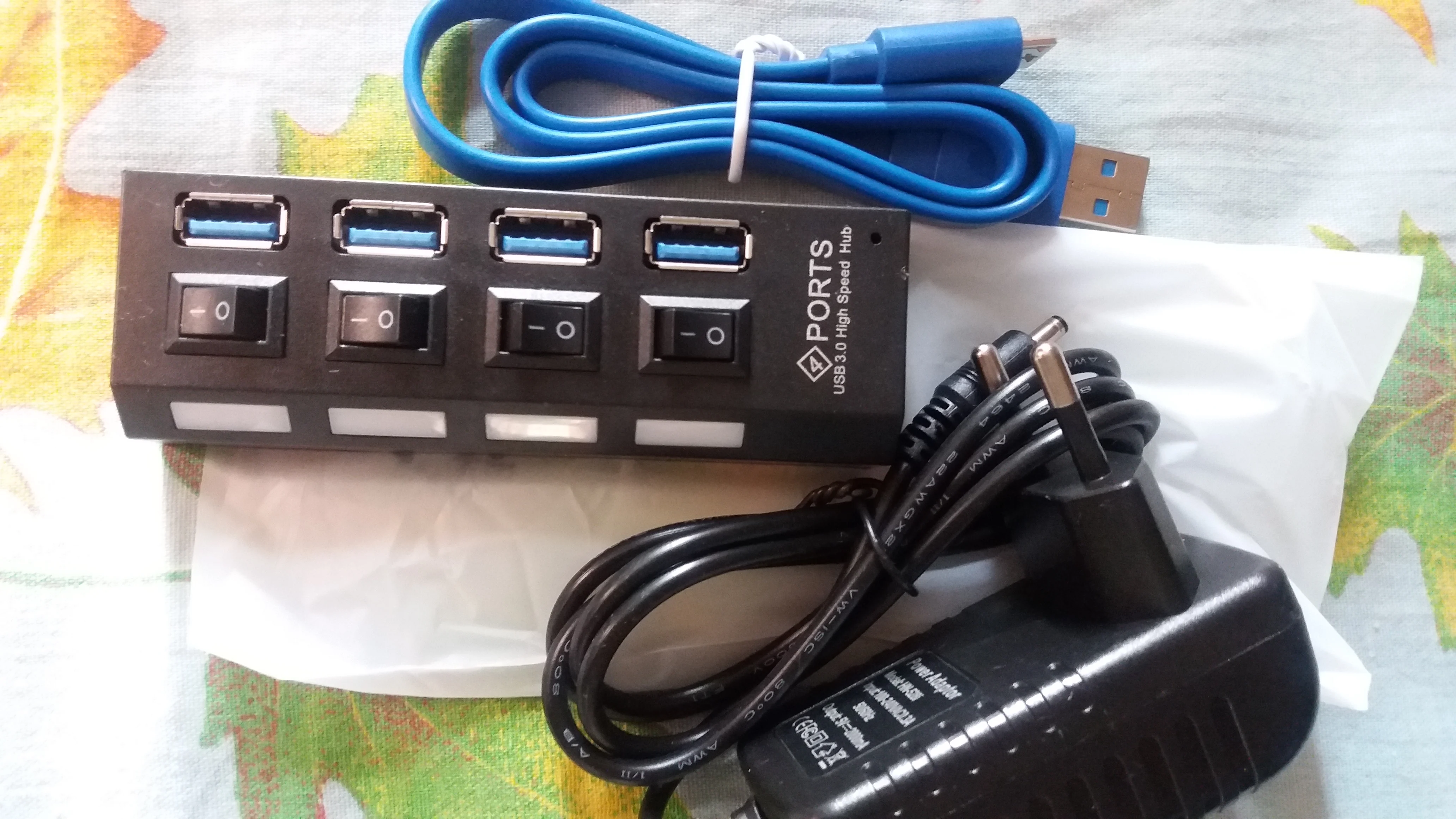 Нормальный хаб. Компактный. Удобно что есть выключатели, не надо вытаскивать из USB гнезда. Если покупаете с блоком питания, можно использовать как зарядку. Дошло очень быстро. Где-то за неделю. Курьером до квартиры. Доставка из России.