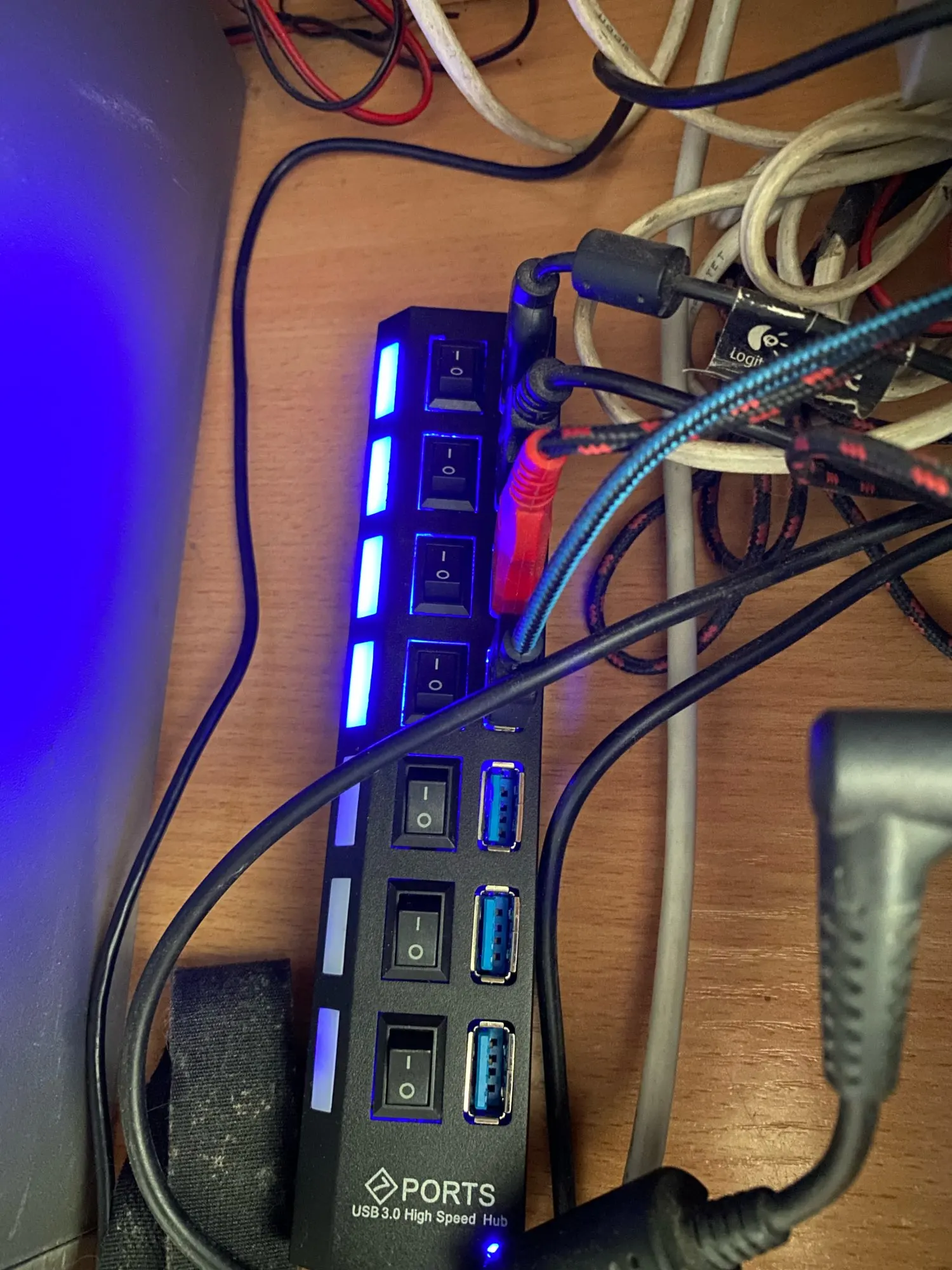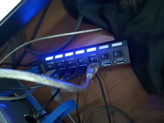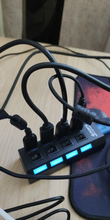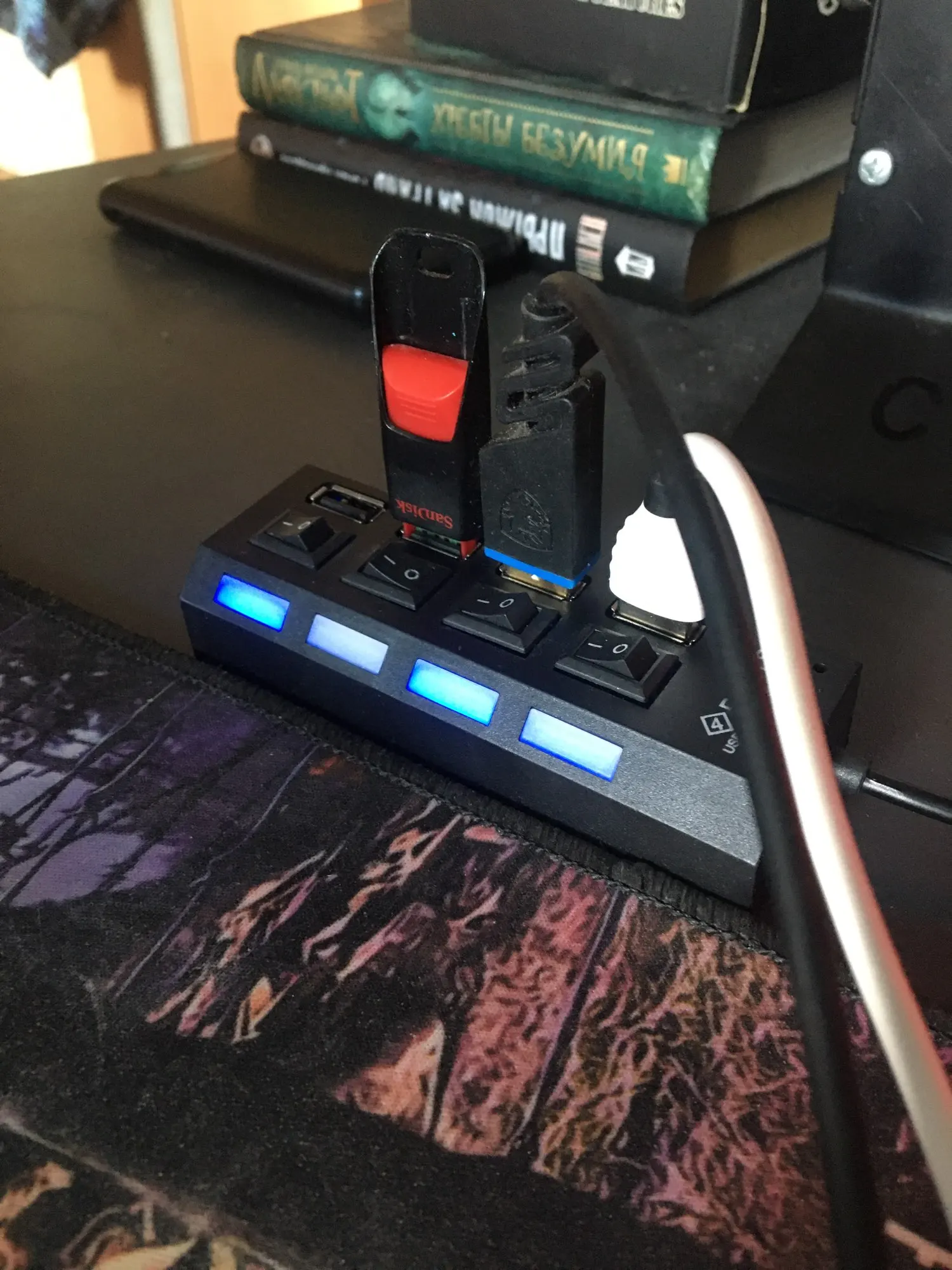 Отличный Хаб. Единственный момент, это слишком короткий шлейф для подключения к компьютеру. Пришлось расположить на системнике под столом.