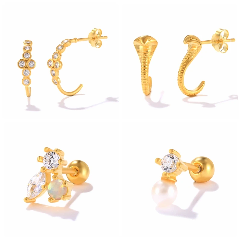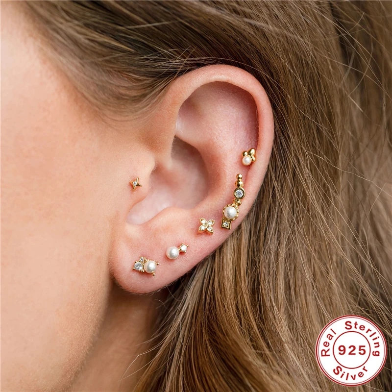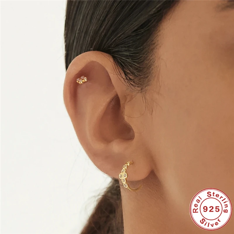 925 Sterling Silver EarringsGold/Silver Color Stud Earrings