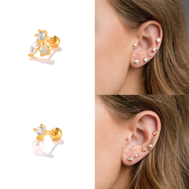 【Тип товара 】: серьги-гвоздики из циркониевого опала и жемчуга