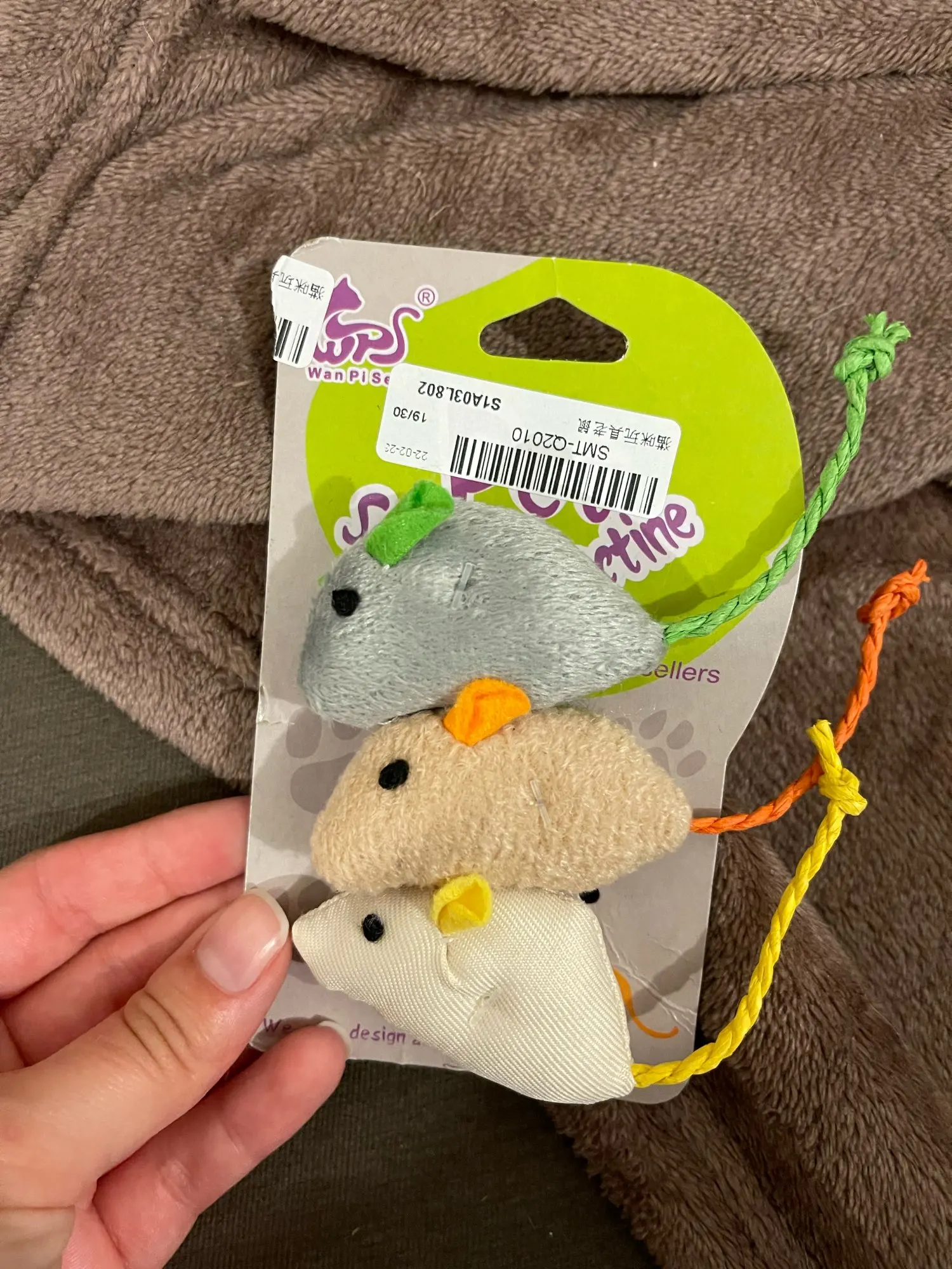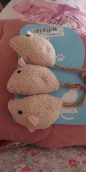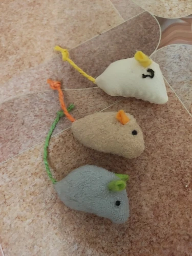 Посылка пришла в Минск за 1 месяц, хорошо упакована, без повреждений. Сами мыши без запаха, во-первых размер очень маленький, без хвоста где-то 4-5см, сшиты в целом хорошо, нитки не торчат. Коты играют.