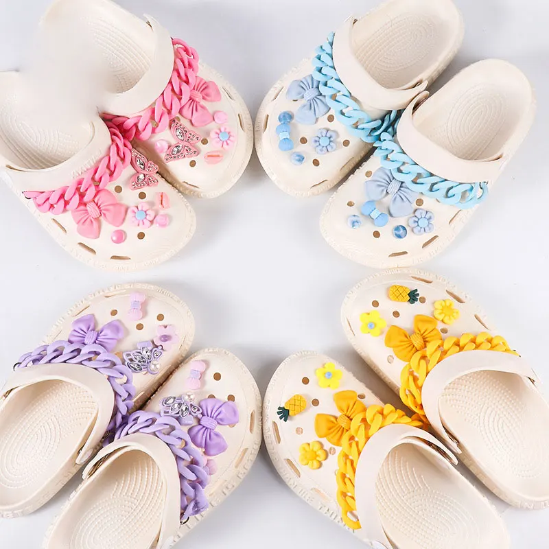 Однотонные Подвески Crocs, Дизайнерские однотонные Подвески в виде бабочки, цветка, ананаса, обуви, модная цепочка, Симпатичные Подвески Croc, новинка 2021, 1 комплект