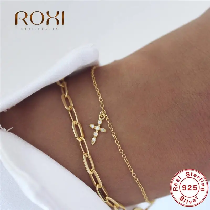 Женские браслеты с кристаллами ROXI, браслеты из стерлингового серебра 925 пробы с золотыми цепочками, оригинальные браслеты из серебра 925 пробы