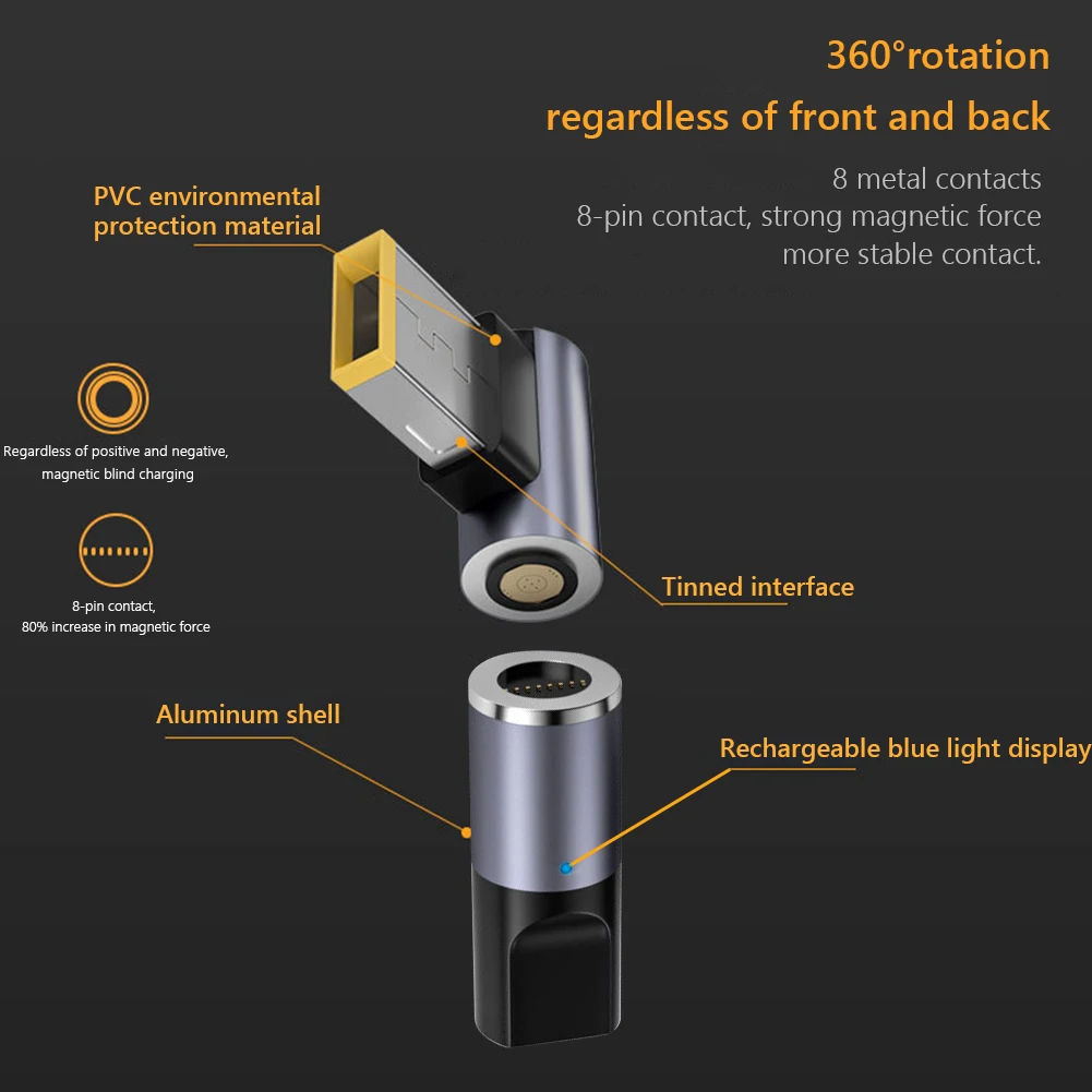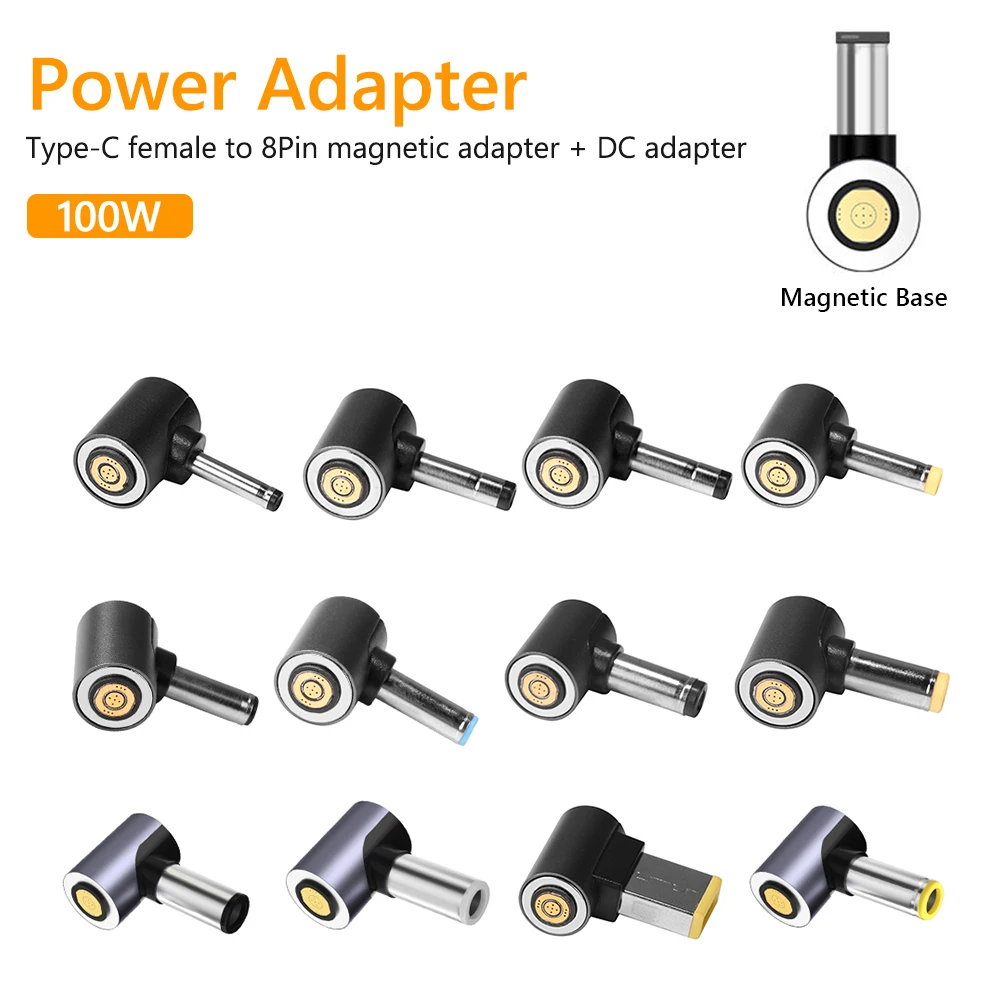 Тип-C female до 8P с магнитным адаптером, 18,5-20V высокой мощности должен быть оплачен покупателем, бесконечные, Поддержка 45 Вт или более зарядное устройство для ноутбука, быстрая зарядка, рекомендуется использовать PD100W кабель передачи данных лучше.