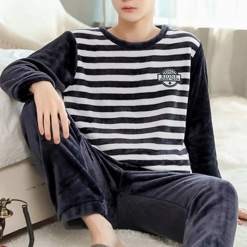 Зима 2021, толстые теплые фланелевые пижамные комплекты с длинным рукавом для мужчин, одежда для сна из кораллового бархата, домашняя одежда для гостиной, домашняя одежда