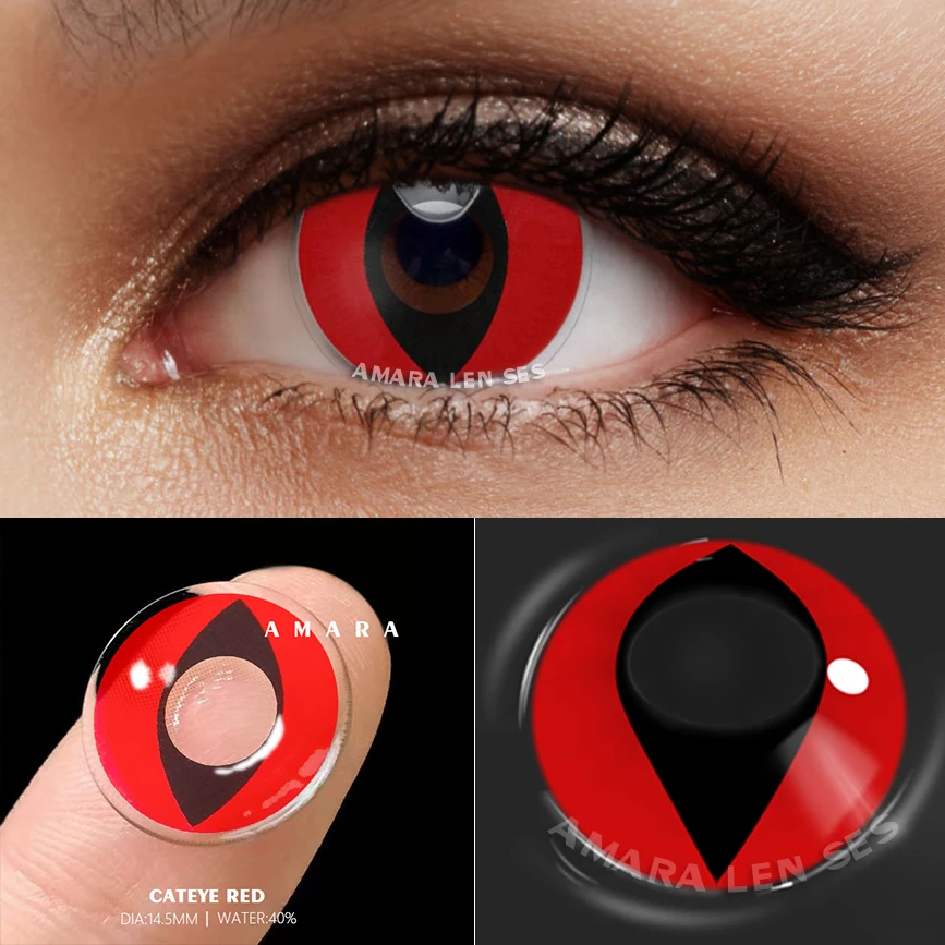 Цветные контактные линзы AMARA для косплея, для макияжа глаз, красн...