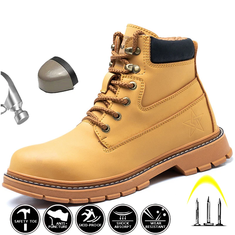 2022 лучшие Брендовые ботильоны с защитой от усталости, промышленные стальные ботинки с пропиткой масла и воды для мужчин, безопасная зимняя обувь