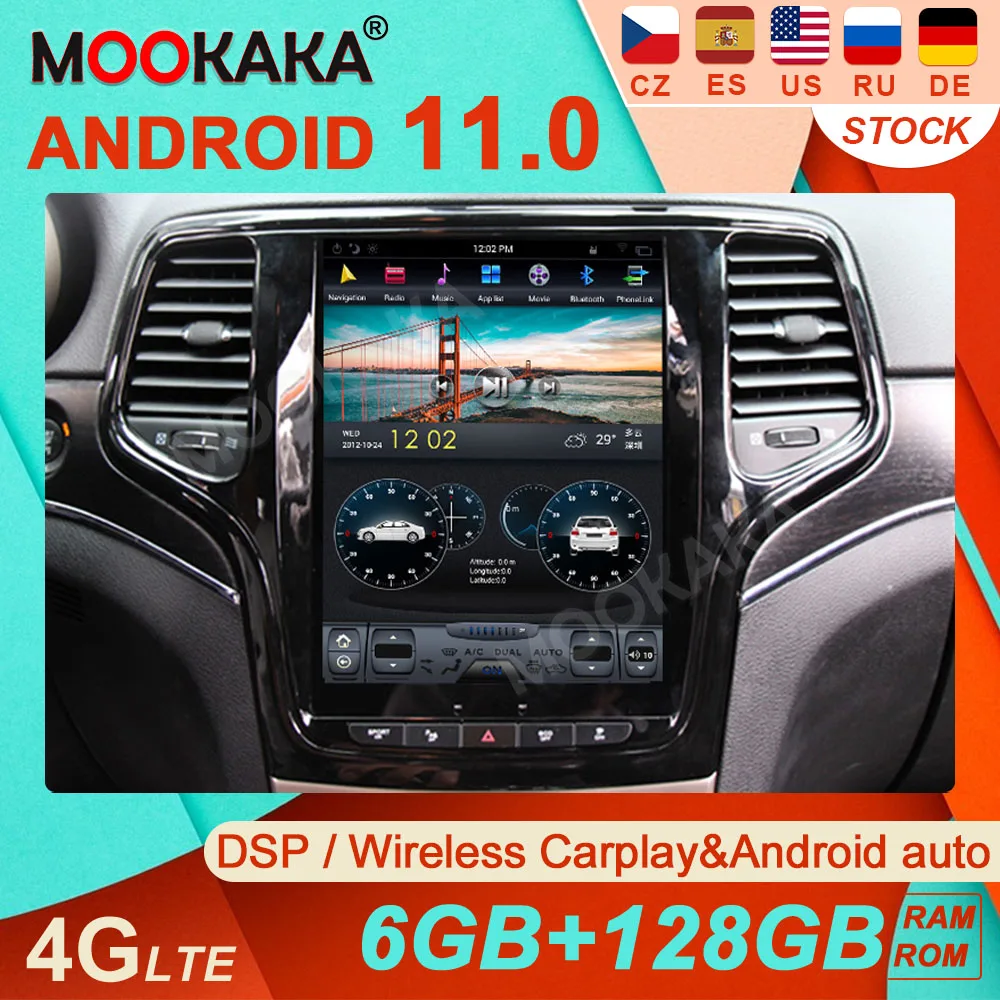 Android 11 6 + 128G 2DIN Tesla для Jeep Grand Cherokee 2014-2018 автомобильное радио, мультимедийный плеер, GPS-навигация, автомобильное стерео головное устройство