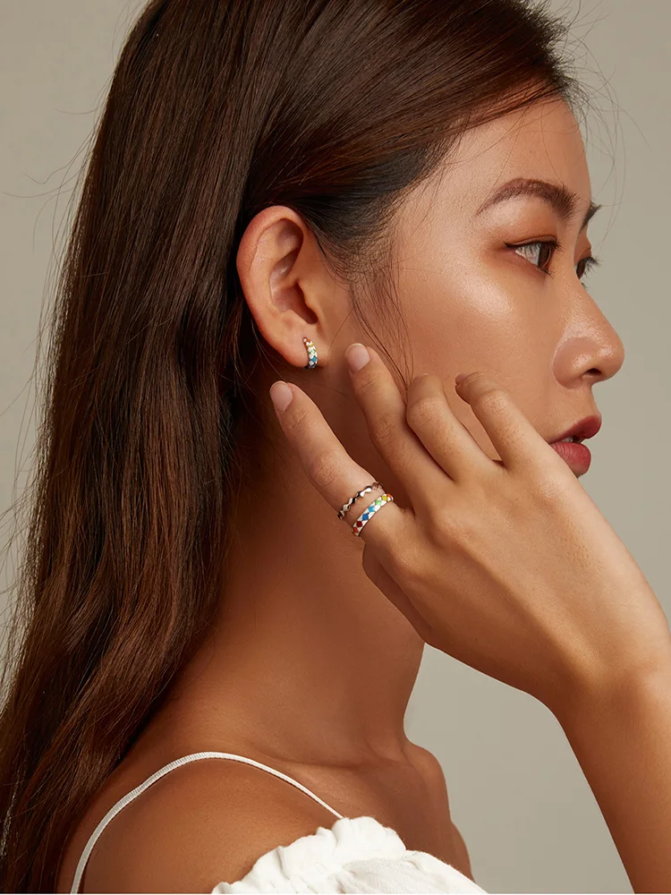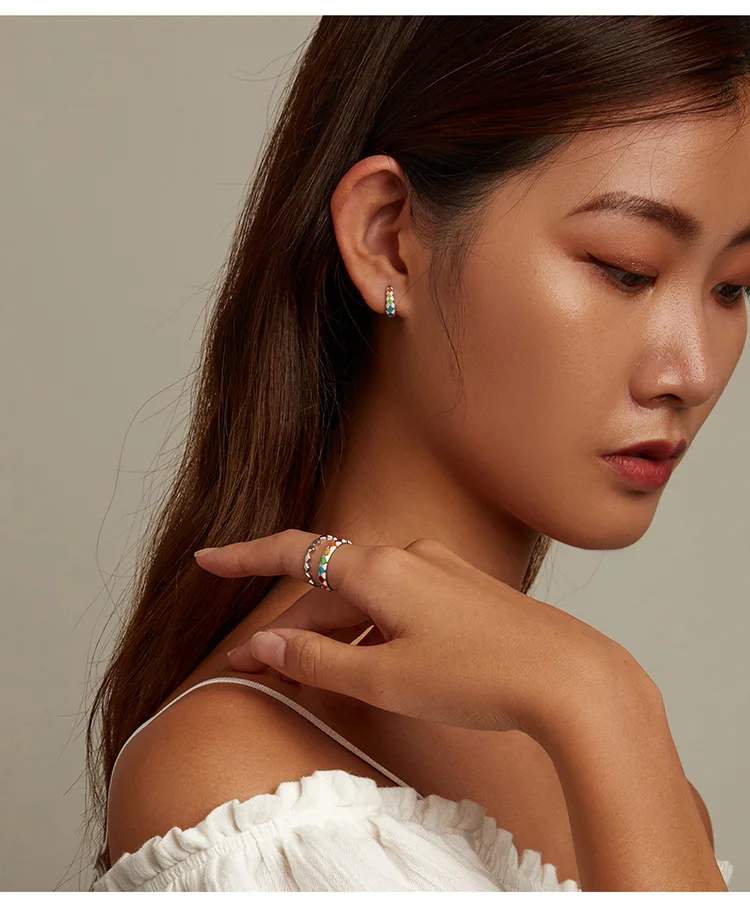 Женские блестящие серьги-гвоздики из серебра 925 пробы с разноцветн...