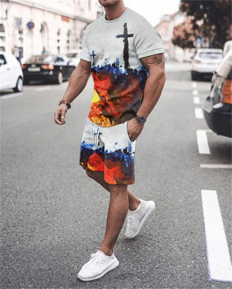 Костюм в стиле хип-хоп для мужчин и женщин, костюм из футболки с 3D рисунком, Мужская футболка с принтом и шорты, костюм-двойка, лето 2021