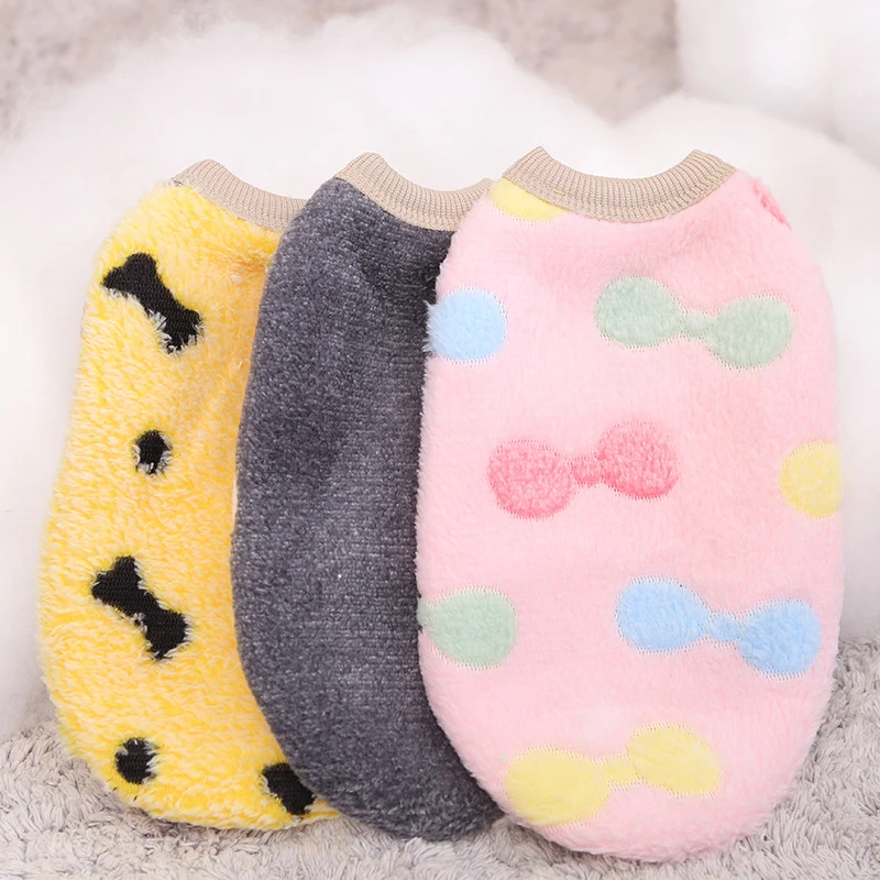 Флисовый зимний теплый жилет для собак, милая одежда с принтом в виде костей с бантом для маленьких собак, мягкая куртка для собак, пальто для щенков чихуахуа