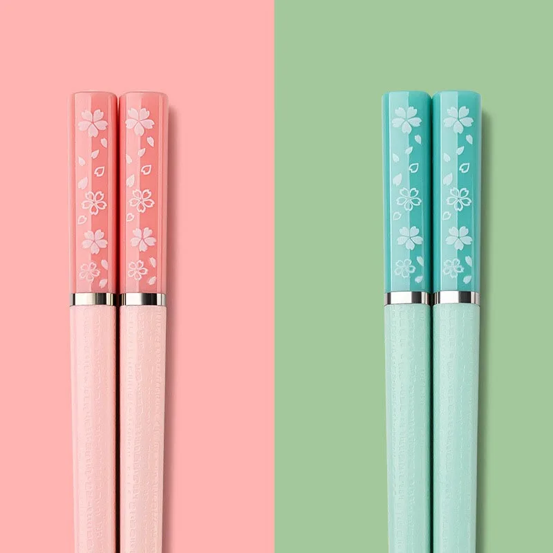Палочки для еды Сакура розовыесиние японские, устойчивые к высоким температурам, Нескользящие, многоразовые столовые приборы для сушиХаси, 1 пара