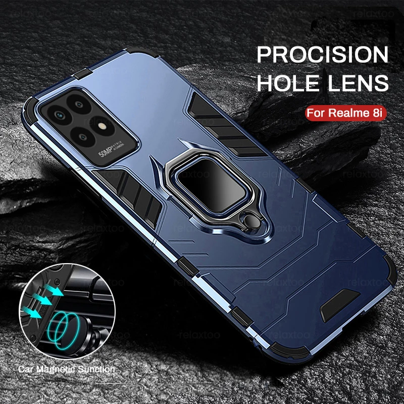 Чехол Realmi 8i, магнитный ударопрочный чехол с кольцом-держателем для автомобиля Realme8i Realme 8i, защитные чехлы на Realmy Relme Kingdom 8i 8 i i8