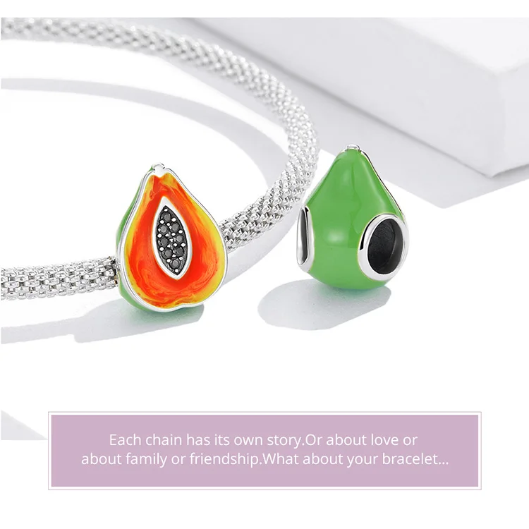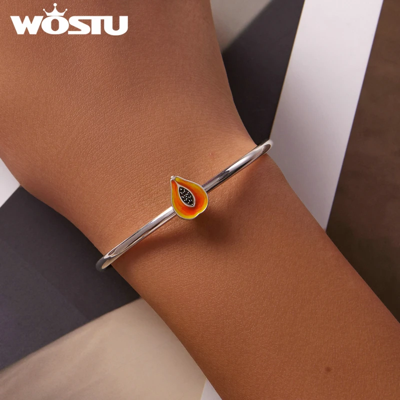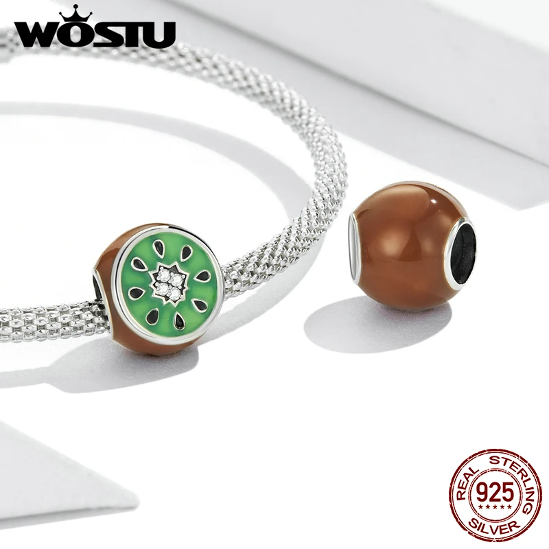 WOSTU, серебро 925 пробы, папайя киви, фруктовые бусины, радужные ц...