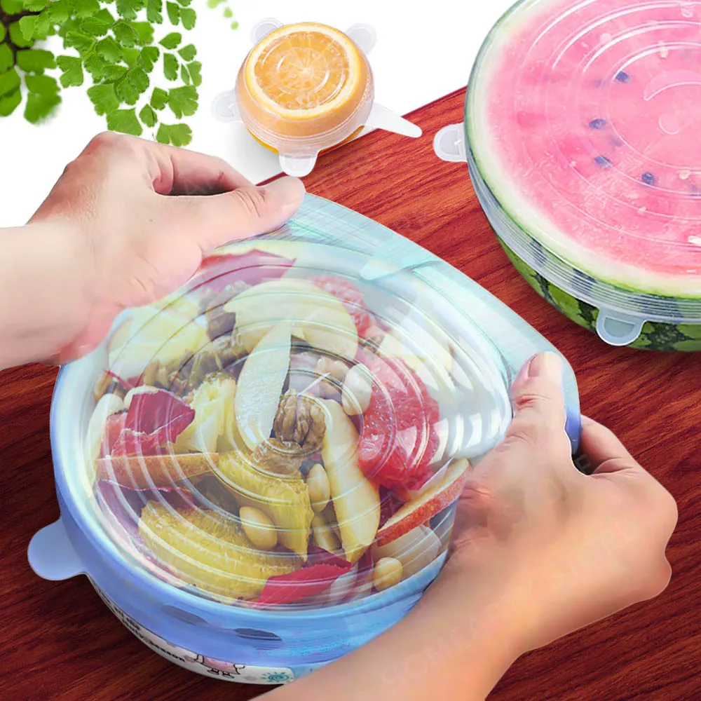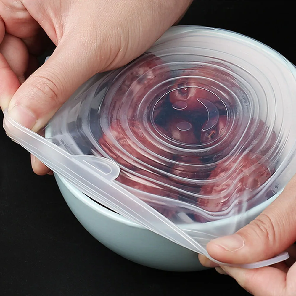 1. Герметичная конструкция и хорошее адсорбирование предотвращают утечку воздуха или жидкости. Даже когда герметичный контейнер перевернут вверх дном, еда внутри не упадет.2. Многоразовые крышки для хранения пищевых продуктов очень гибкие, прочные и противоскользящие.