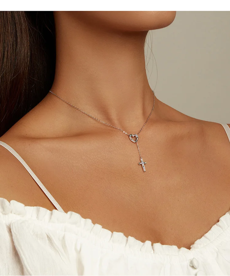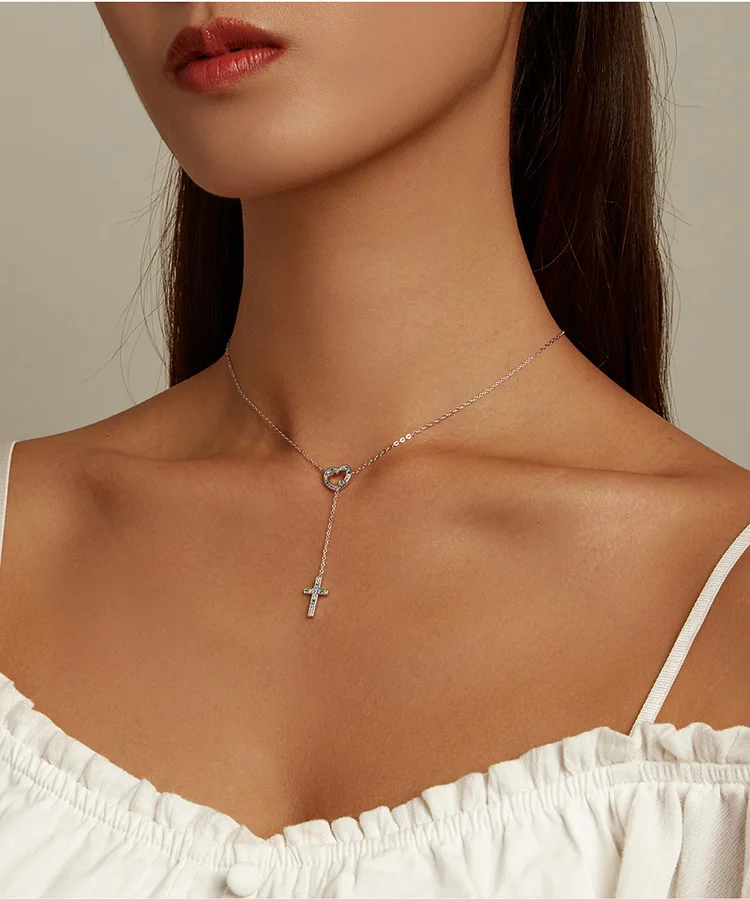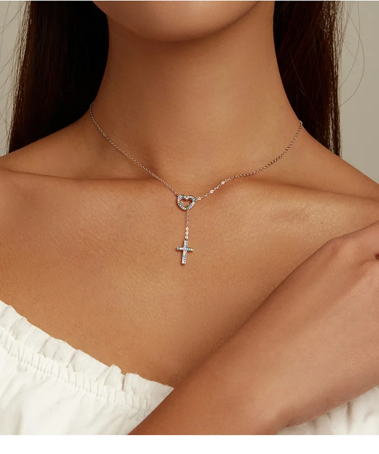 Женский чокер из серебра 925 пробы, с крестом