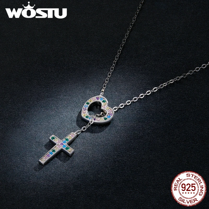 WOSTU колье из настоящего серебра 925 пробы с ажурным сердечком, дл...