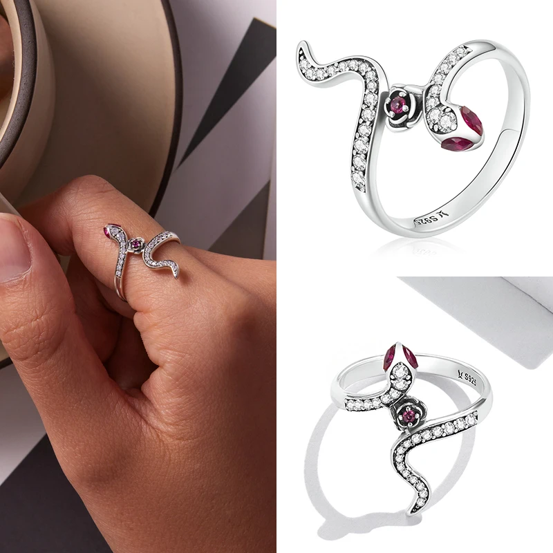 Женское кольцо в виде змеи и розы, из серебра 925 пробы