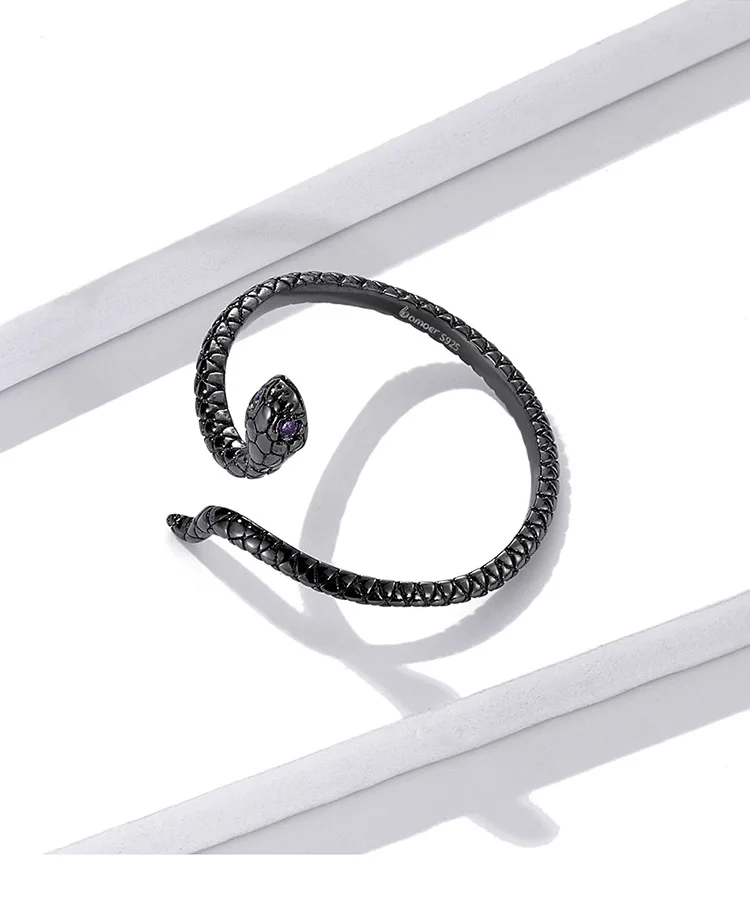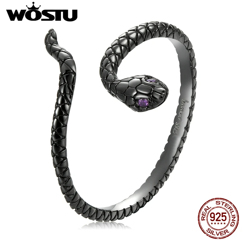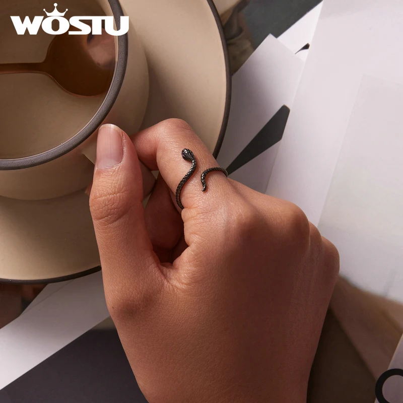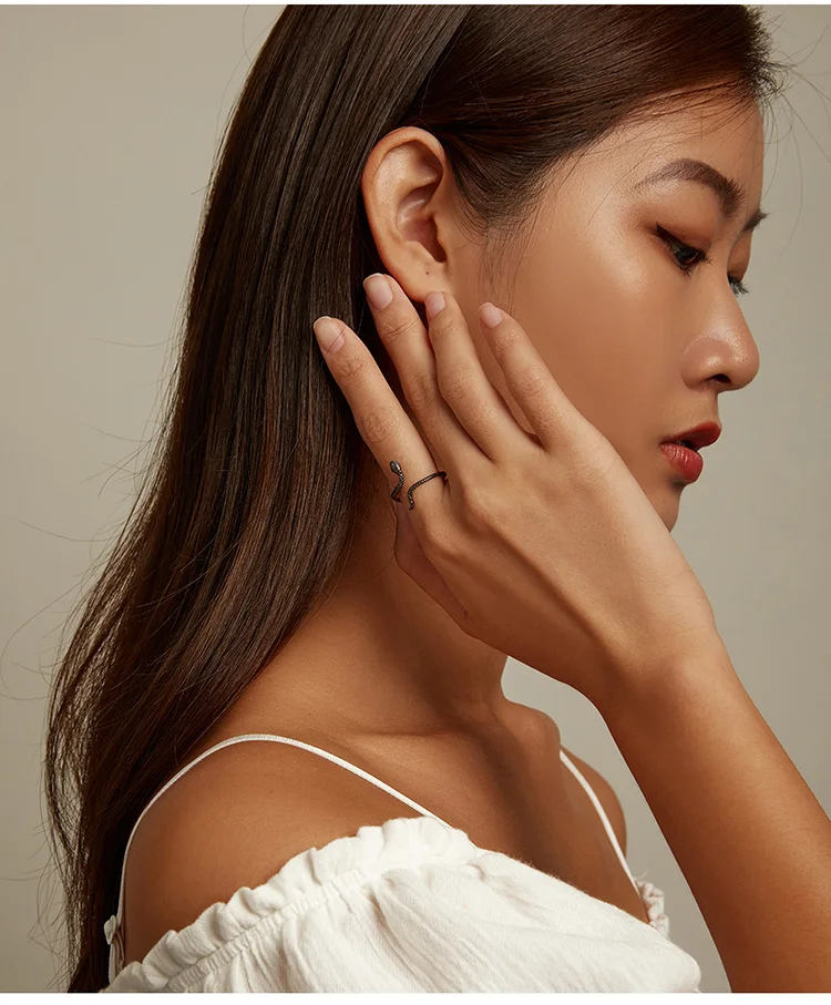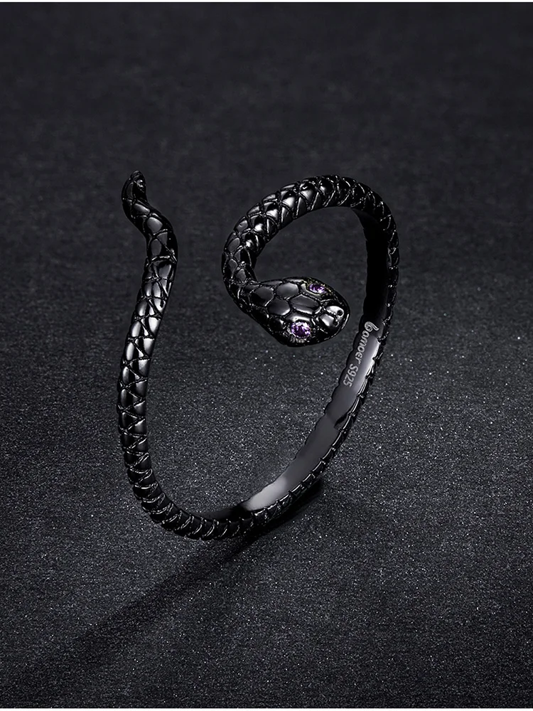 Женские открытые кольца в виде таинственной черной змеи, серебро 925 пробы