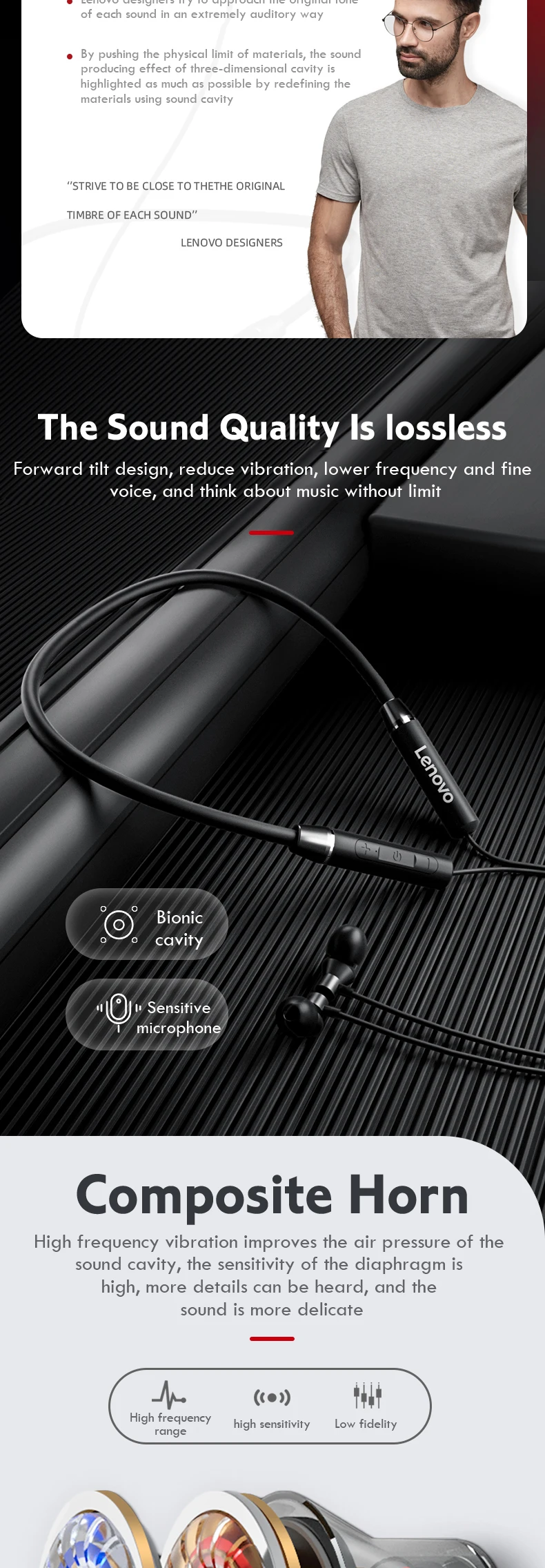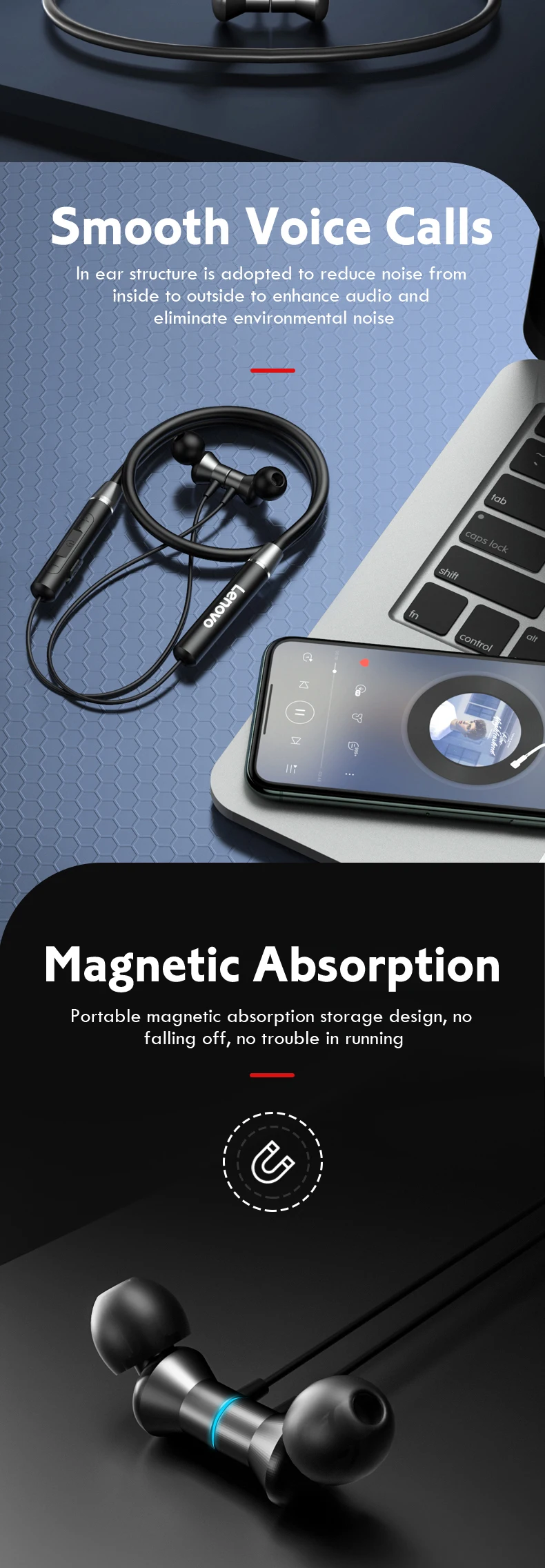 Оригинальная беспроводная гарнитура Lenovo HE05 Bluetooth 5,0 с магнитным шейным ремешком, спортивные наушники для бега, водонепроницаемые наушники с шумоподавлением