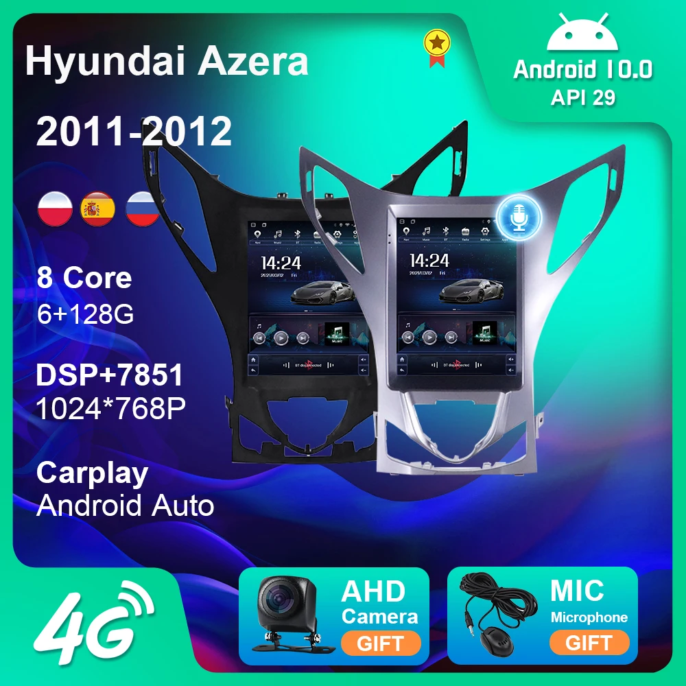 Автомагнитола для Hyundai Azera 2011, 2012, Android 10, 4G, Wi-Fi, Android