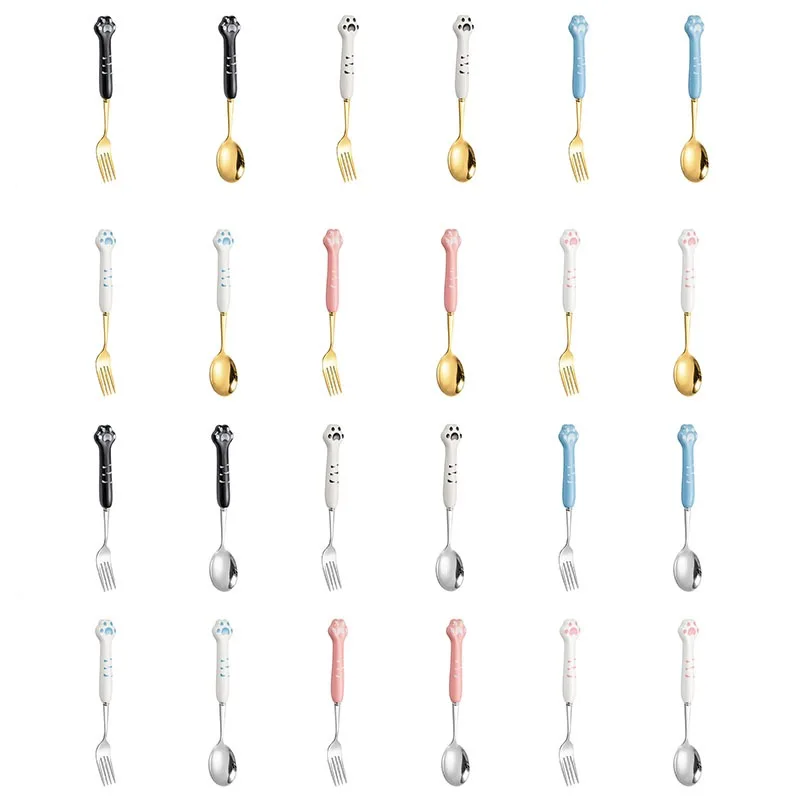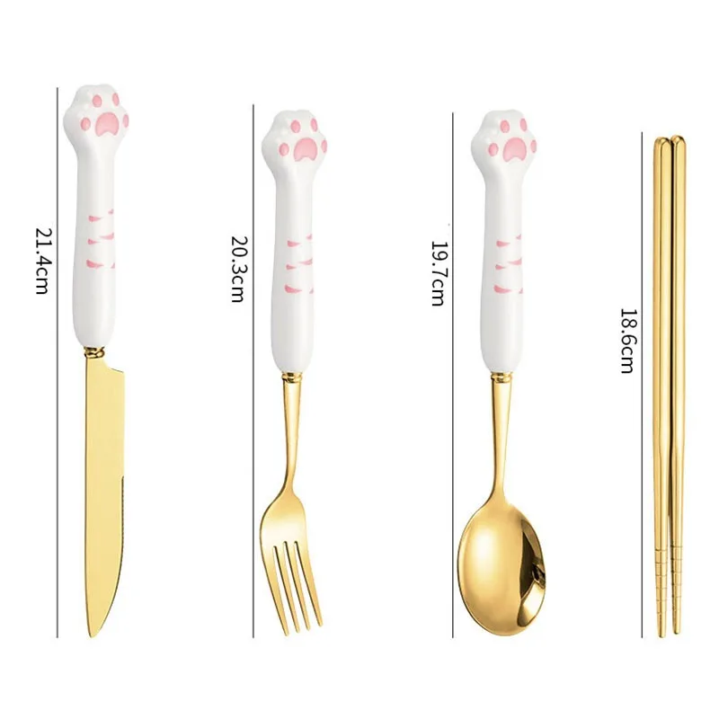 Посуда из нержавеющей стали, керамическая ложка с когтями в виде кошки, вилка, палочки для еды, столовая посуда, портативный многоразовый кухонный инструмент