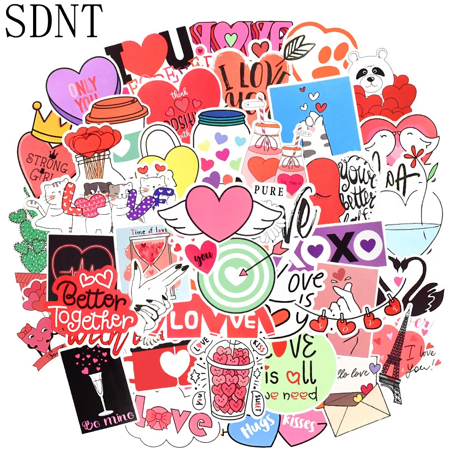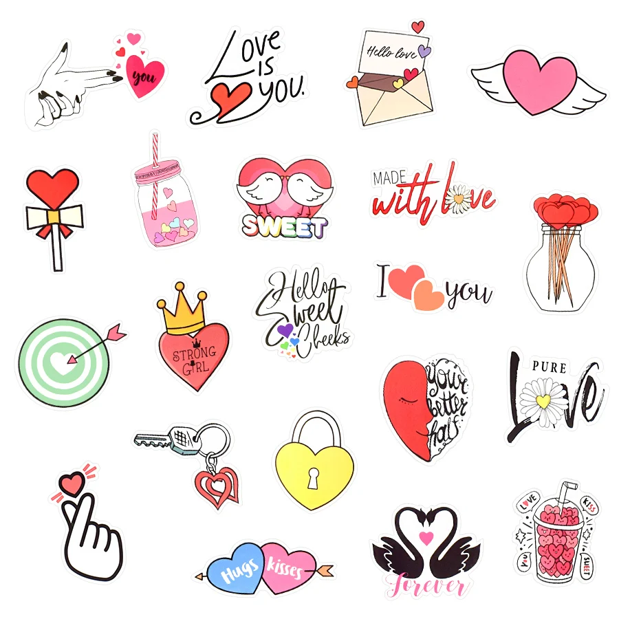 10/50 шт милые наклейки с сердечками тема мультфильм стикер s для детей DIY велосипед гитара ноутбук стикер s День святого Валентина Подарочная коробка Декор
