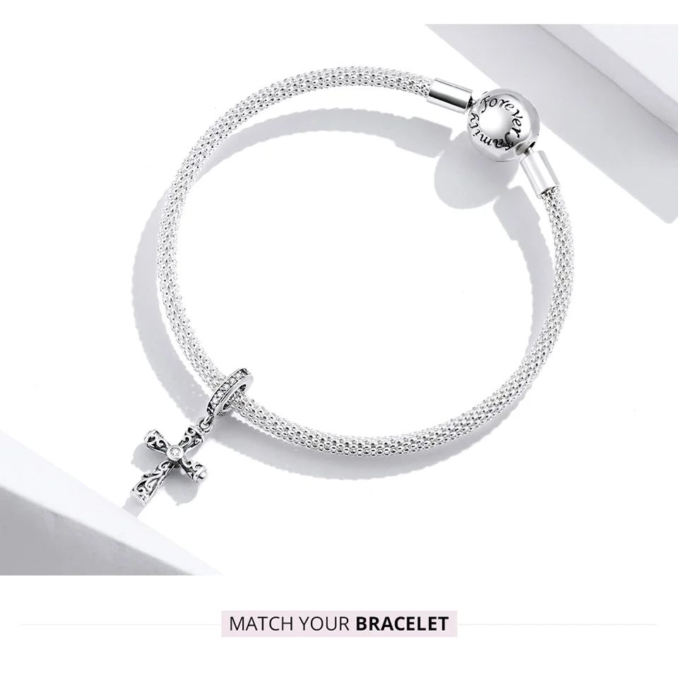 WOSTU, Стерлинговое Серебро 925 пробы, Винтажные бусины в форме сердца, крестообразные подвески для женщин, подходит для оригинального браслета, ожерелье, ювелирное изделие, FIC2151