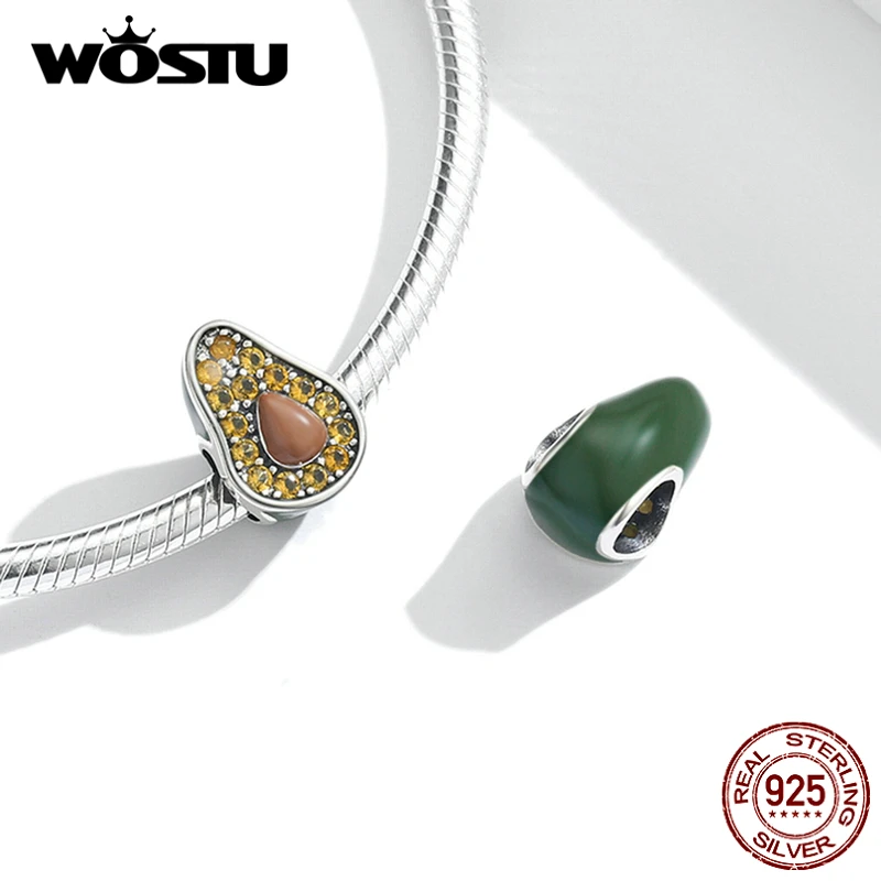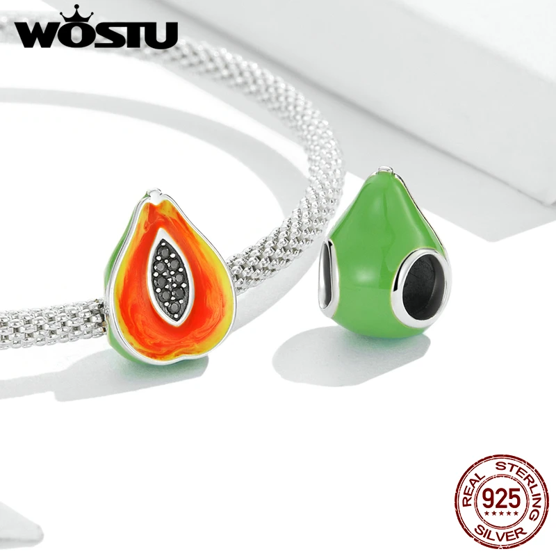 WOSTU, серебро 925 пробы, папайя киви, фруктовые бусины, радужные циркониевые амулеты для женщин, подходит для оригинального браслета, браслет, ювелирное изделие
