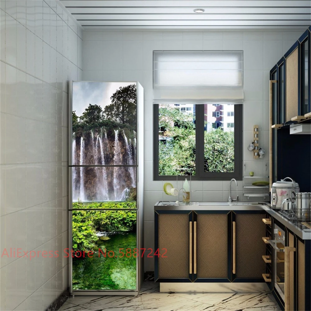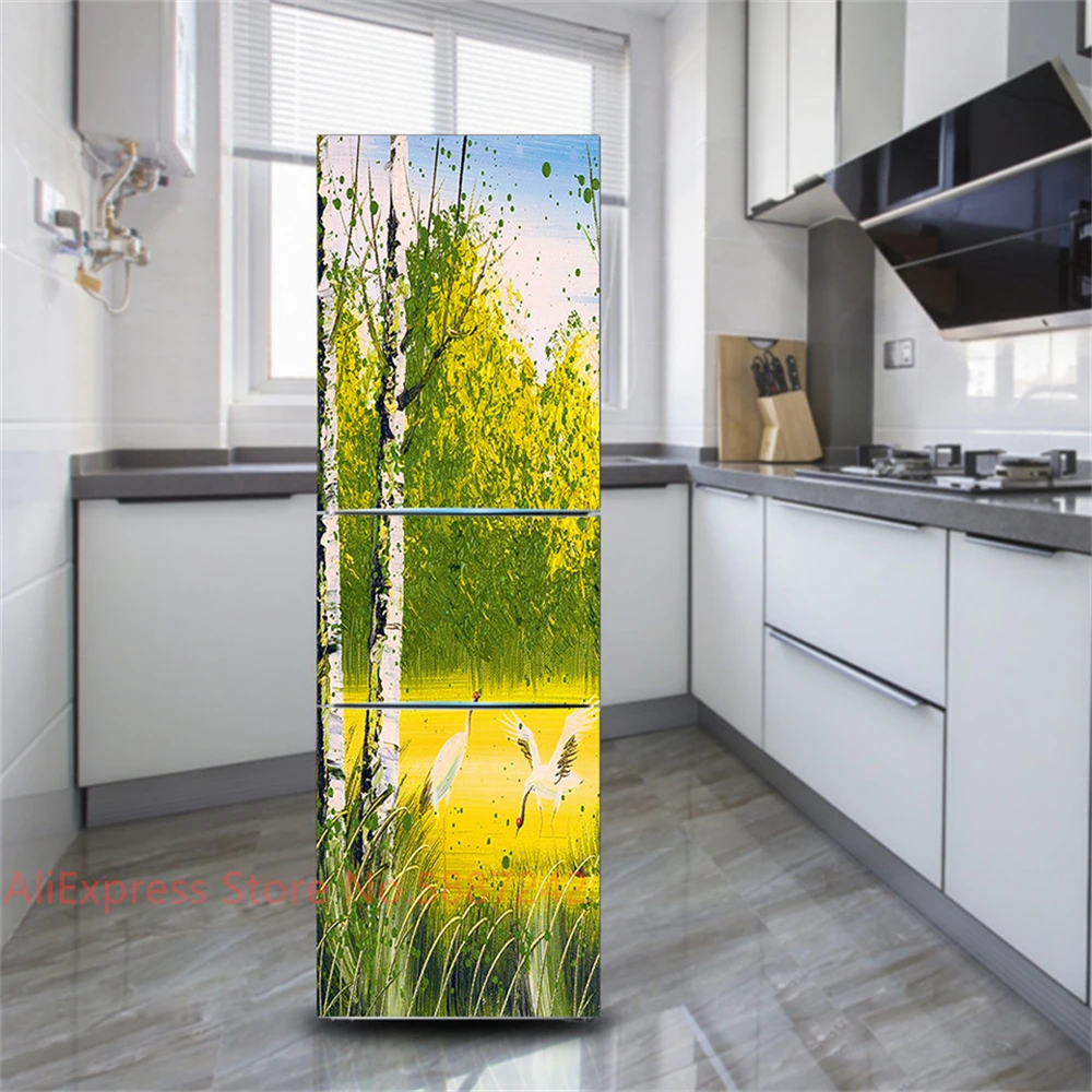 Виниловые наклейки на холодильник, крышка двери, искусственная бамбуковая пленка для растений в морозильной камере, самоклеящаяся пленка, полный декоративный ремонт, 3d