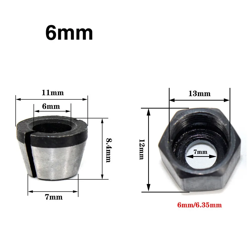 3 шт. Цанга фрезы (6 мм + 6,35 мм + 8 мм) адаптер патрона из углеродистой стали для гравировки Обрезки Станок патроны + 5 монтажных гаек