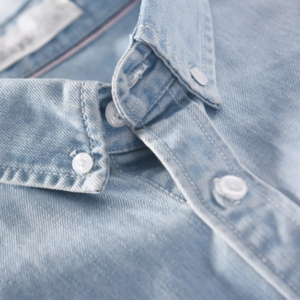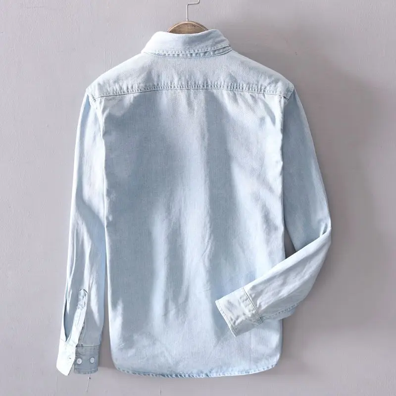 Мужская джинсовая рубашка с длинными рукавами, повседневная Однотонная рубашка в японском стиле, Классическая рубашка из денима с карманами в стиле ретро, топы на весну и осень
