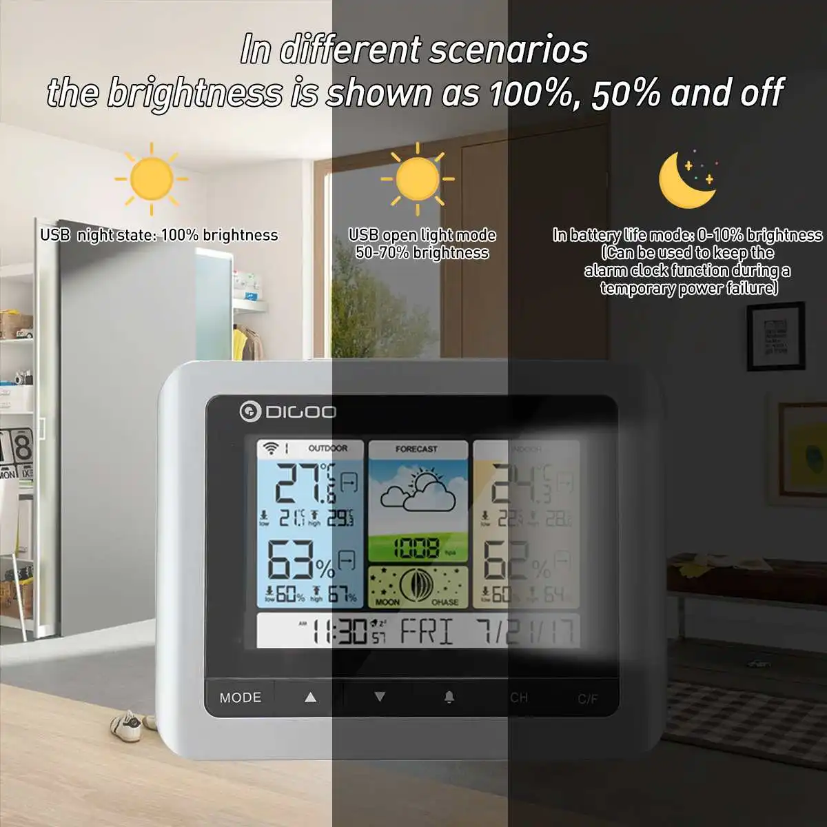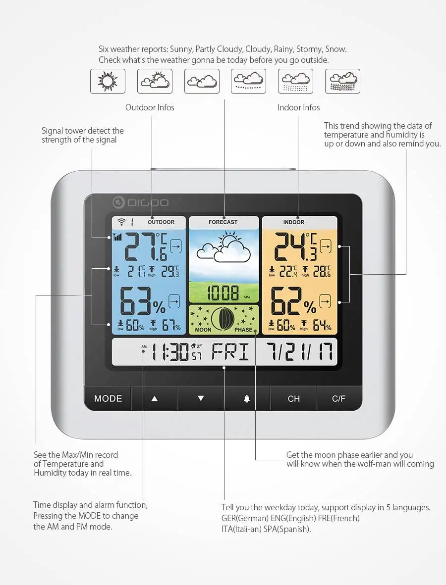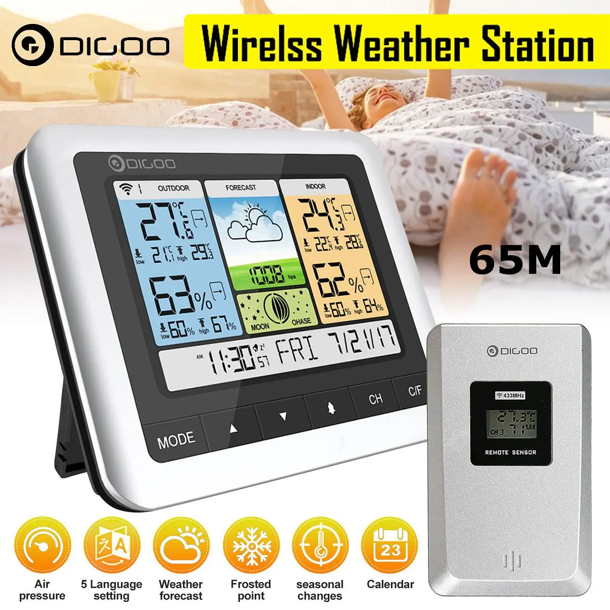 Беспроводная метеостанция Digoo DG-TH8888, комнатный термометр, датчик влажности, датчик прогноза, будильник, подсветка даты