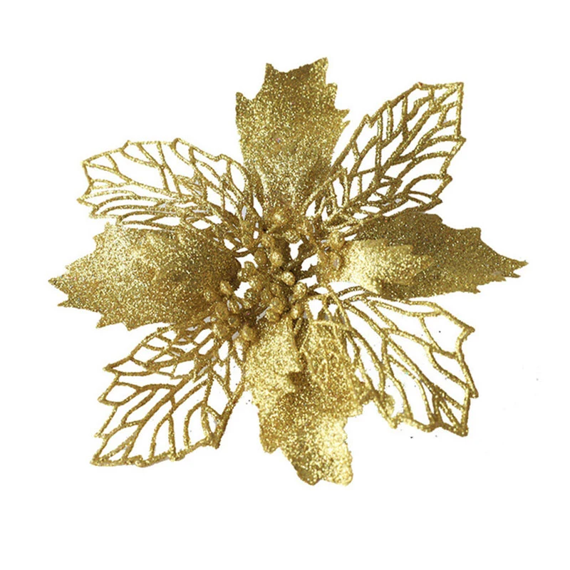 Рождественские украшения, блестящие искусственные цветы, декор для рождественской елки для вечерние, 2022, новогодние украшения, подарочные украшения