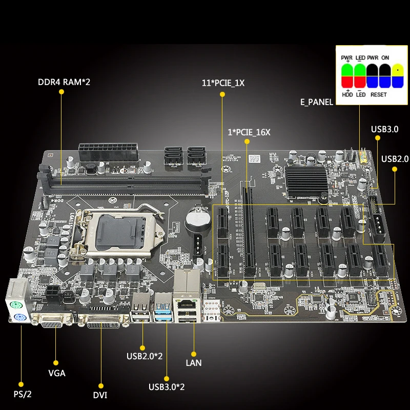 Набор материнской платы для майнинга BTC B250, LGA 1151 DDR4 12 PCIE 1x 16x, графическая карта GPU G3090, кулер для охлаждения процессора ETH, установка для майнинга биткоинов